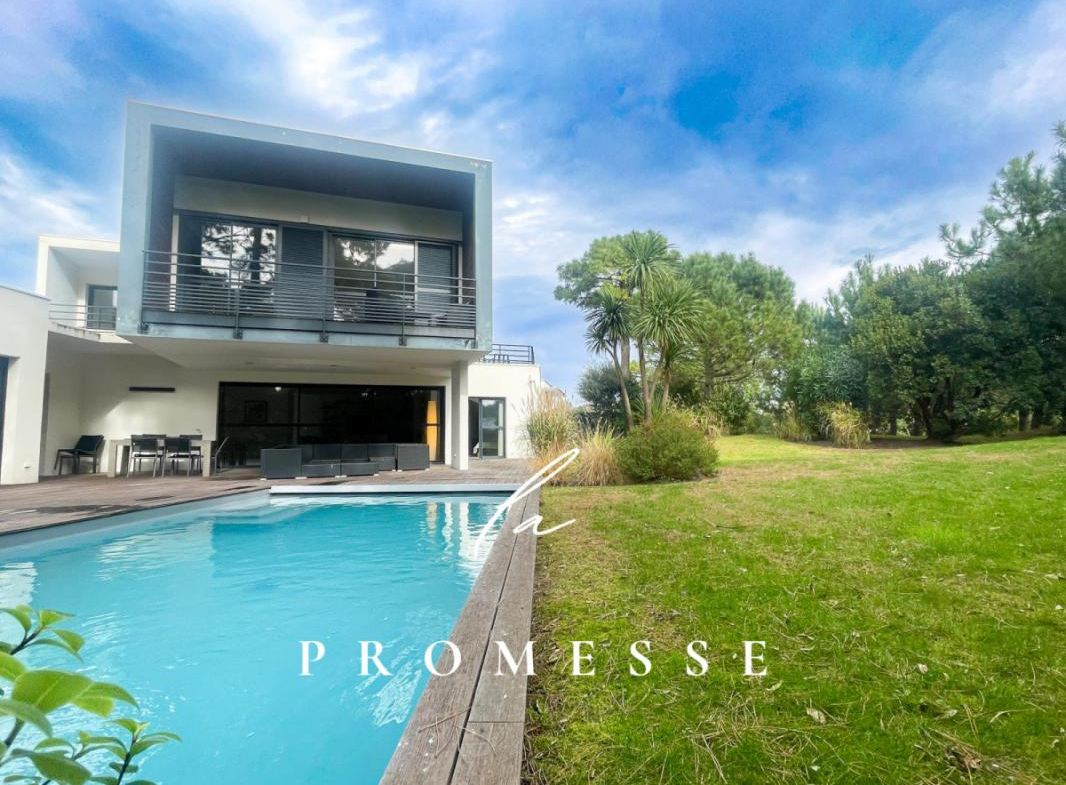 LA PROMESSE a le privilège de vous présenter une VILLA DE STANDING de 390 m² au c?ur du secteur ultra-prisé de CHIBERTA. Cette MAISON CONTEMPORAINE se situe à une adresse rare sur le marché de l’IMMOBILIER de PRESTIGE sur la CÔTE BASQUE, en lisière de GOLF et à proximité immédiate des PLAGES.
