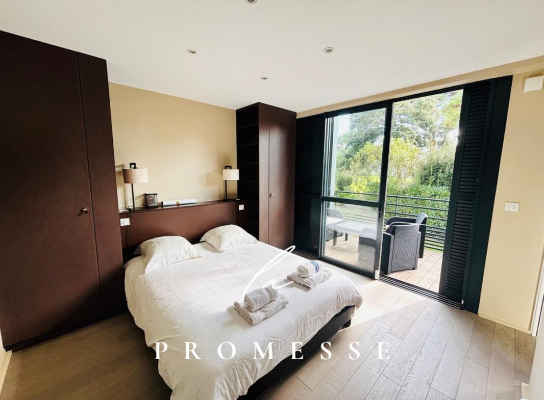 La propriété se distingue par des volumes généreux. Le double séjour, vaste et lumineux, s’ouvre sur une cuisine équipée et une large terrasse d’agrément. L’espace nuit, propose quatre SUITES complètes. La suite principale est dotée d’une double salle de bain et d’une terrasse exclusive. Les autres SUITES bénéficient chacune de leur salle d’eau et d’un extérieur privatif (loggia ou terrasse) offrant une vue arborée et un aperçu sur le parcours de GOLF.