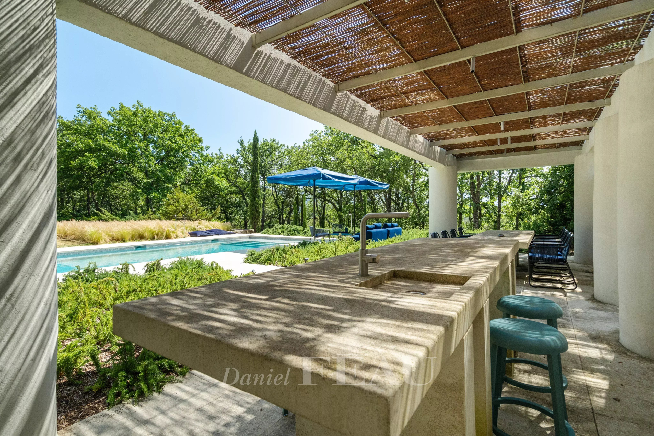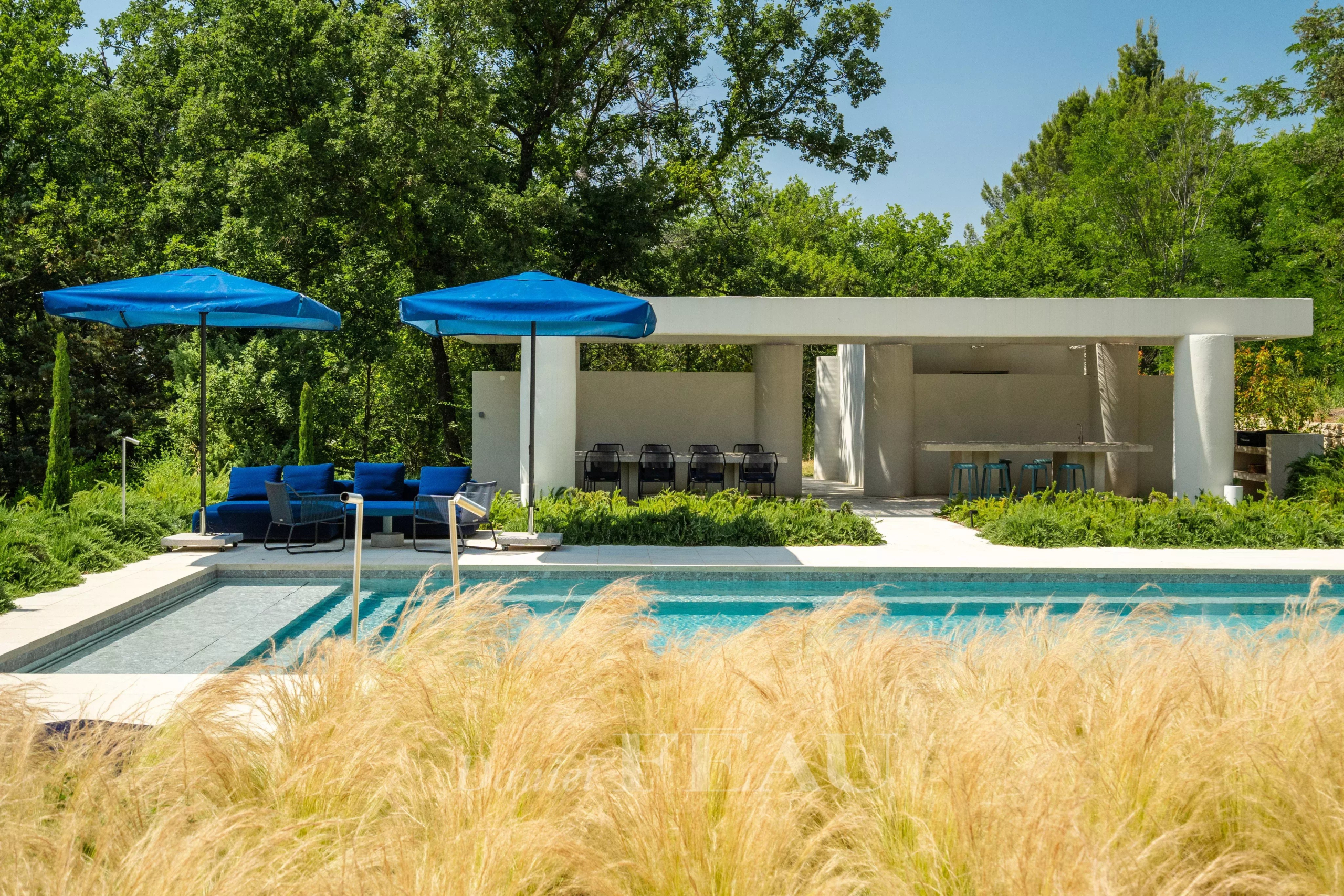 La piscine chauffée de 15 x 5 m s’intègre parfaitement dans le cadre verdoyant. Un pool house avec une cuisine d’été et une salle d’eau constitue un espace idéal pour des moments de détente ou de convivialité, à souhait.