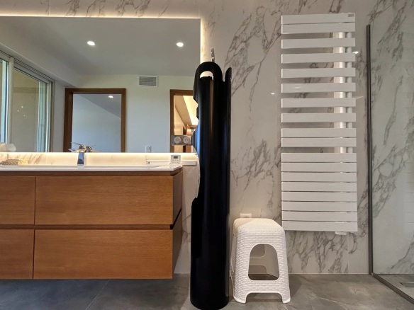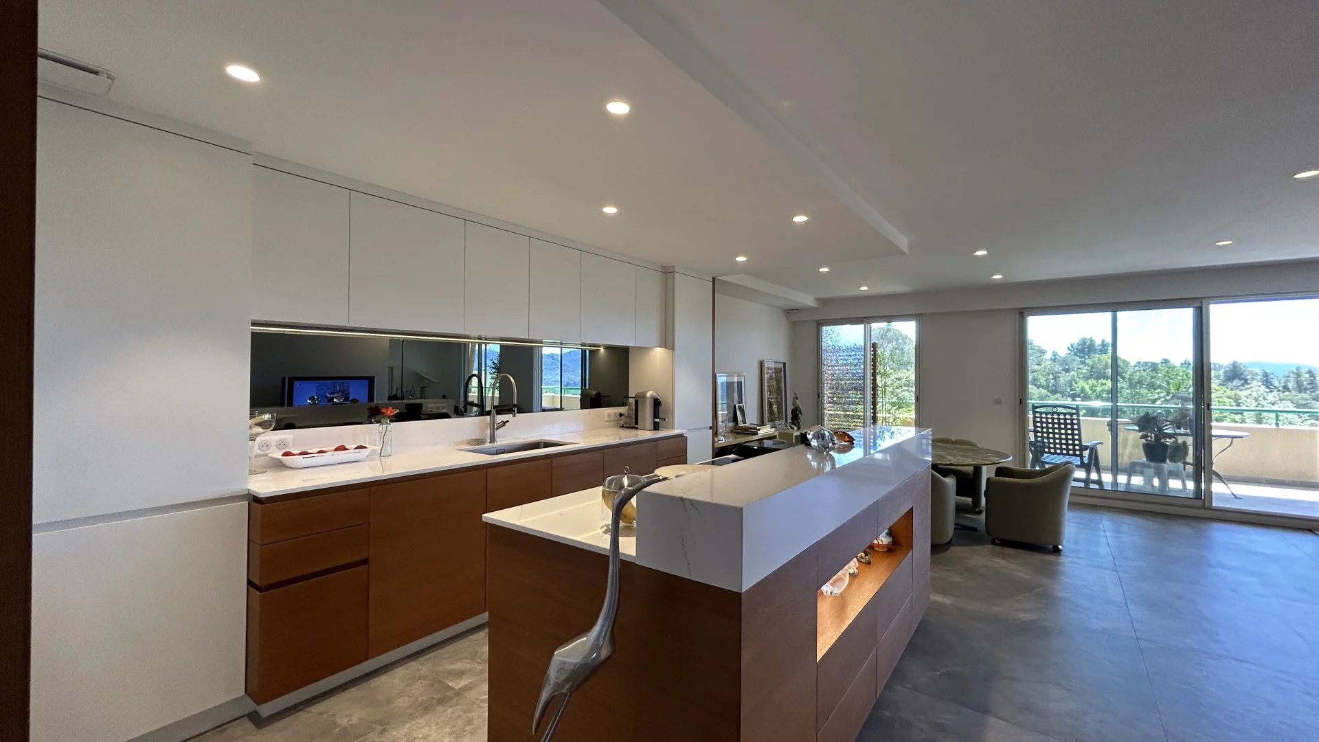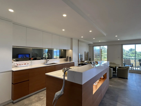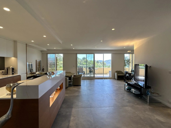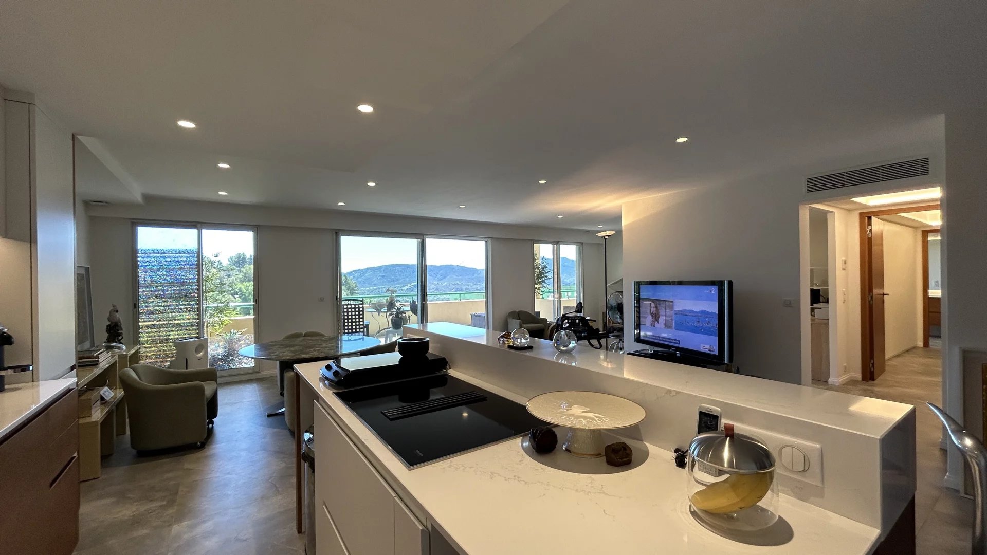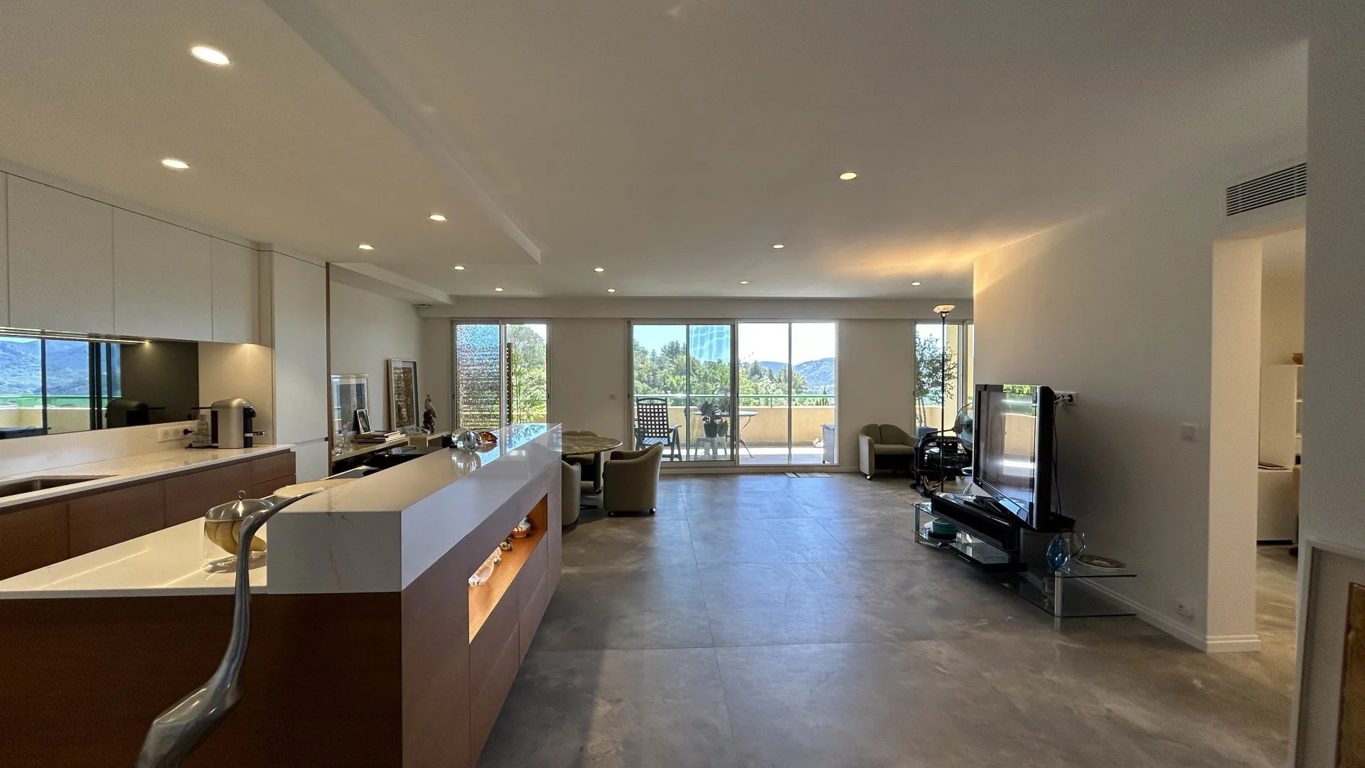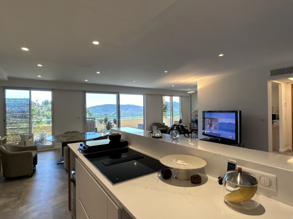 Au sein d’un domaine privé et très sécurisé avec terrain de tennis, deux piscines, salle de sport, ce magnifique appartement de 145 m2 habitable (99,20 m2 Loi Carrez) se compose d’une entrée avec très grand dressing, d’un séjour avec cuisine ouverte luxueusement équipée “Miele” bénéficiant de prestations haut de gamme donnant sur une grande terrasse de 35 m2 exposée Sud-Est vue verdure, collines de l’Estérel, golf, 1 chambre avec grande salle de bains et wc meubles sur mesure faits par menuisier artisan, douche à l’italienne,Toilettes lavantes, miroirs led, 1 chambre avec grand dressing, grande buanderie aménagée, une salle de bains avec baignoire et wc, wc indépendants, un garage 16 m2 avec prise pour voiture électrique.