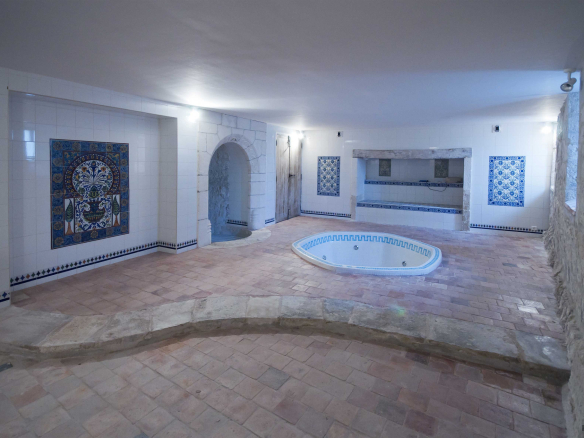 – d’un superbe bâtiment de plus de 400 m2 avec plusieurs salles de réception, des bureaux, une grande terrasse, cuisine, sanitaires et un grand spa avec jacuzzi, sauna et grandes douches