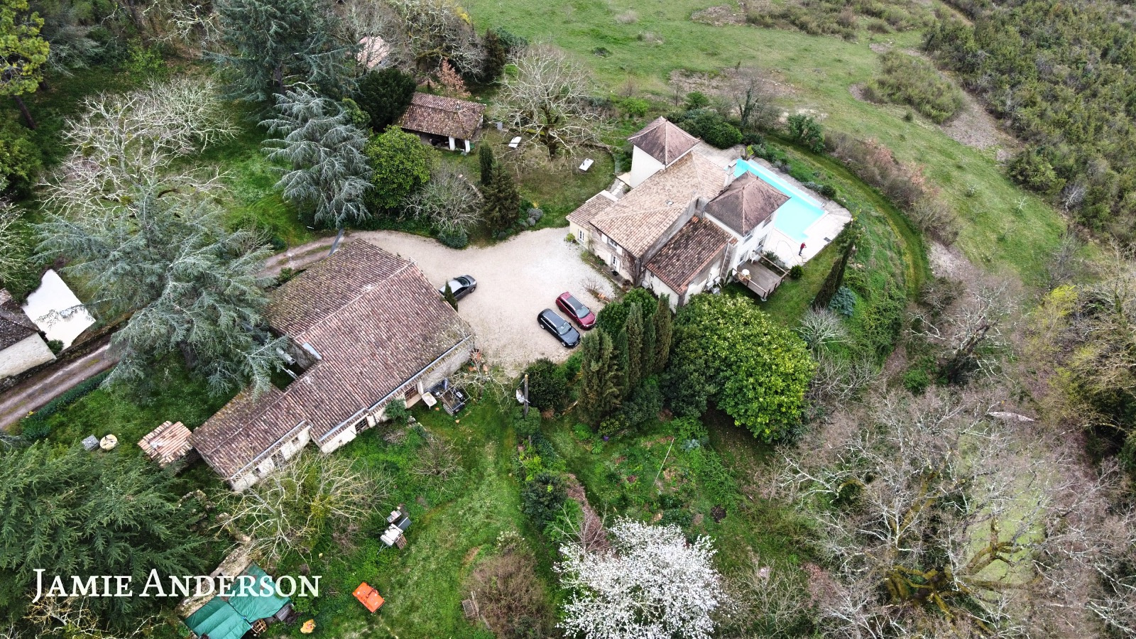 Ce grand Domaine se compose d’une maison principale, lumineuse et bien entretenue, Un pigeonnier aménagé en hébergement et deux chalets aussi aménagés en hébergement. Les autres bâtiments sont :
