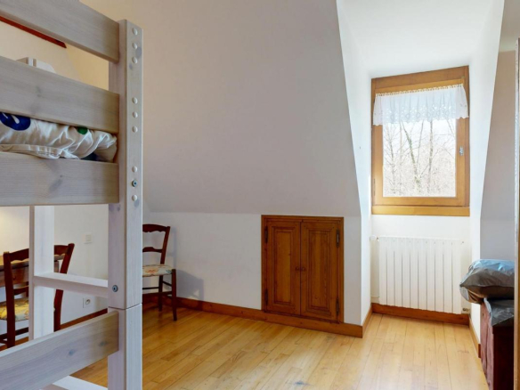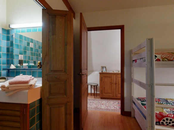 À l’étage, on trouve plusieurs chambres mansardées avec points d’eau et penderies, ainsi que des salles d’eau, WC et une salle de bain supplémentaire.