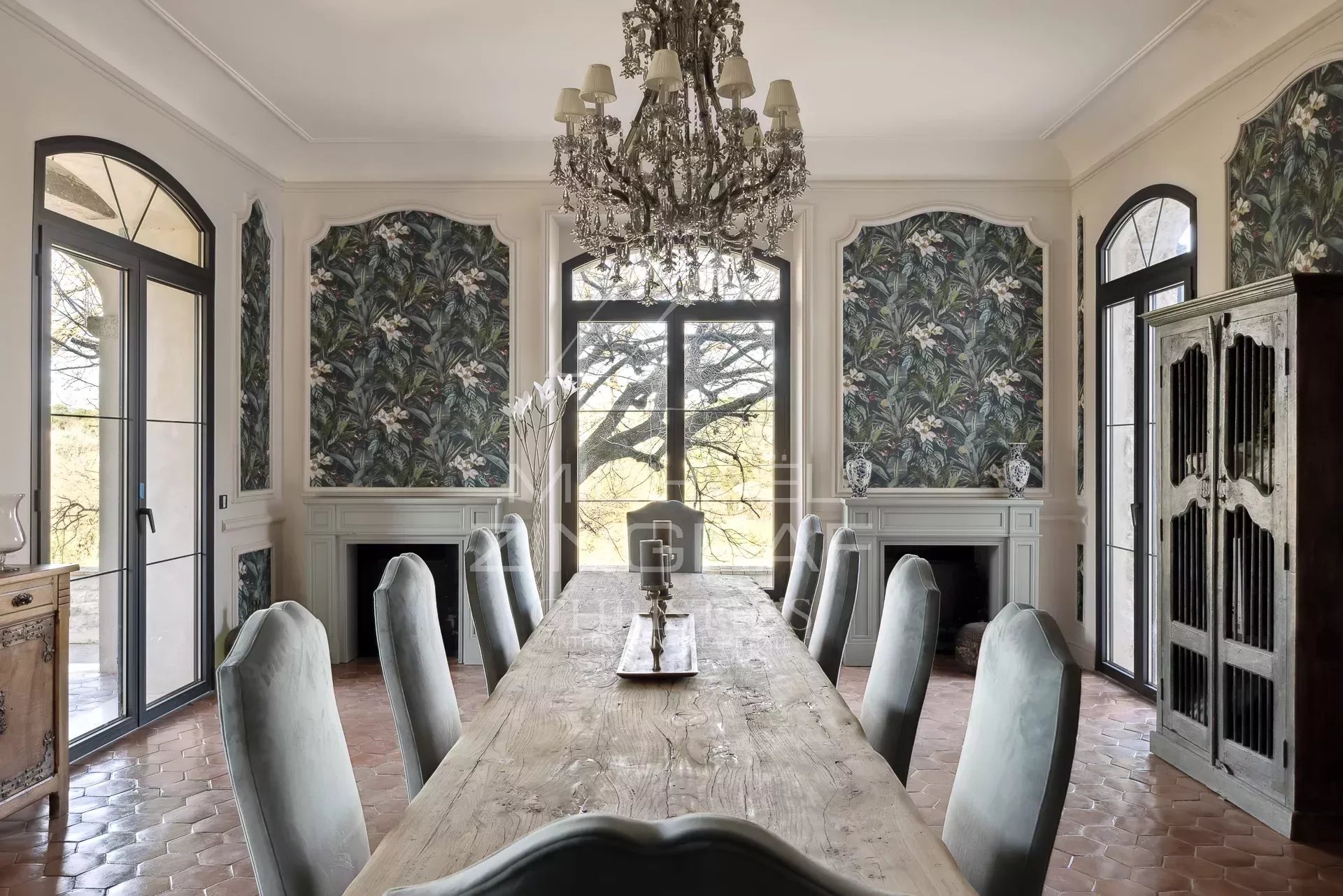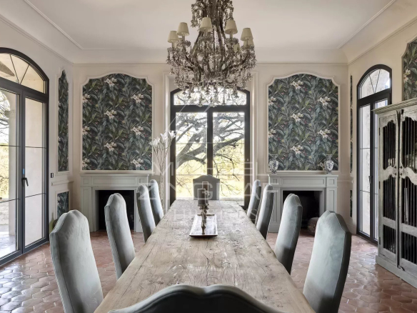 La bastide principale se distingue par ses vastes espaces de réception lumineux, une salle à manger d’hiver et d’été, ainsi qu’une spacieuse cuisine familiale. Elle offre également sept chambres en suite, dont deux suites principales, pour un confort optimal.