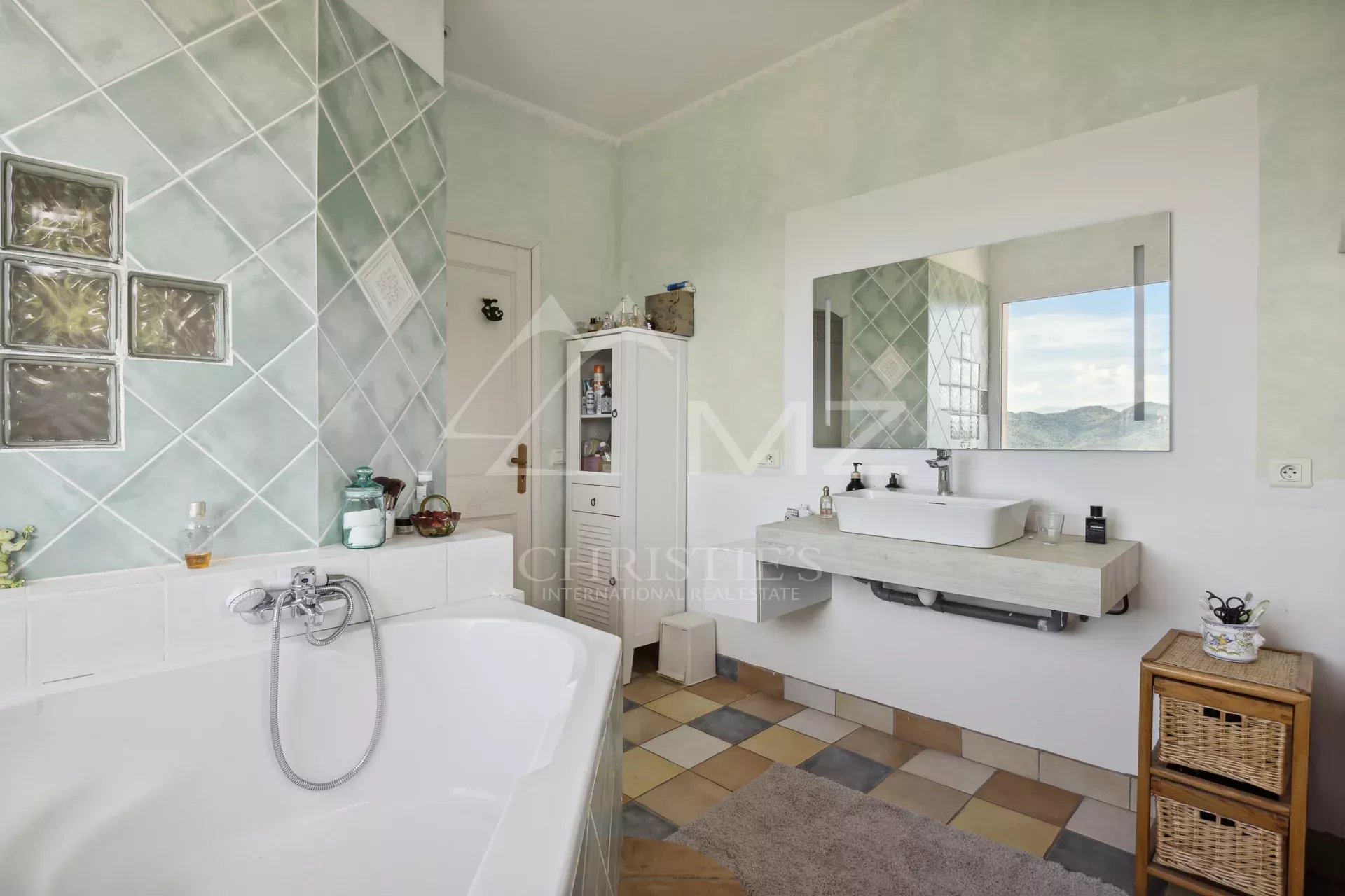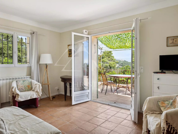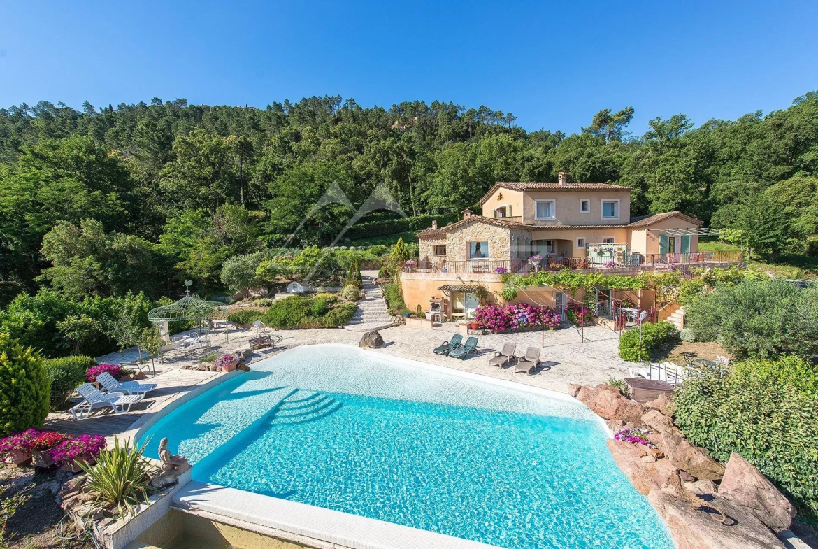 Co-Exclusivité. A l’abri des regards, dans un domaine sécurisé à seulement 10 minutes des plages de la Napoule, et 25 minutes de la Croisette, superbe villa familiale édifiée au coeur d’un parc arboré d’environ 8 000 m2 avec piscine et vue panoramique sur l’Estérel, jusqu’à la mer. Trois appartements en annexes et un vaste garage de la superficie de la maison complètent ce bien. Un havre de paix hors du temps.