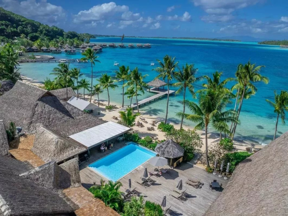 📍 BORA BORA — POLYNÉSIE FRANÇAISE — Surnommée “la perle du Pacifique”, Bora Bora est l’une des destinations hôtelières les plus prestigieuses et les plus recherchées au monde. Ses lagons turquoise, ses montagnes verdoyantes et ses plages de sable blanc attirent une clientèle internationale à fort pouvoir d’achat tout au long de l’année. La proximité immédiate de la plage Matira — l’une des plus belles de Polynésie — et l’accessibilité via l’aéroport international de Bora Bora confèrent à cet établissement un positionnement géographique exceptionnel.