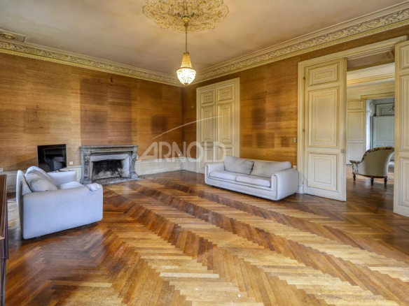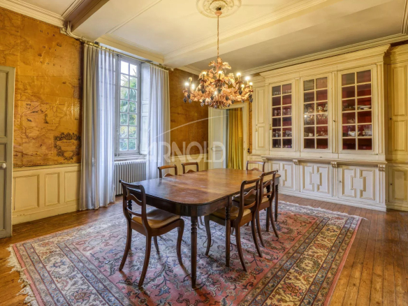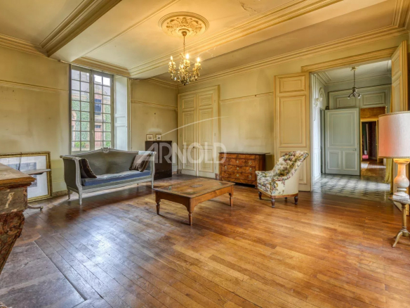 La demeure , de 463 m² habitables ,se distingue par de majestueuses pièces de réception agrémentées de cheminées, et ornements, ses 8 chambres réparties sur 2 niveaux,3 salles de bains, bureau, greniers et caves.