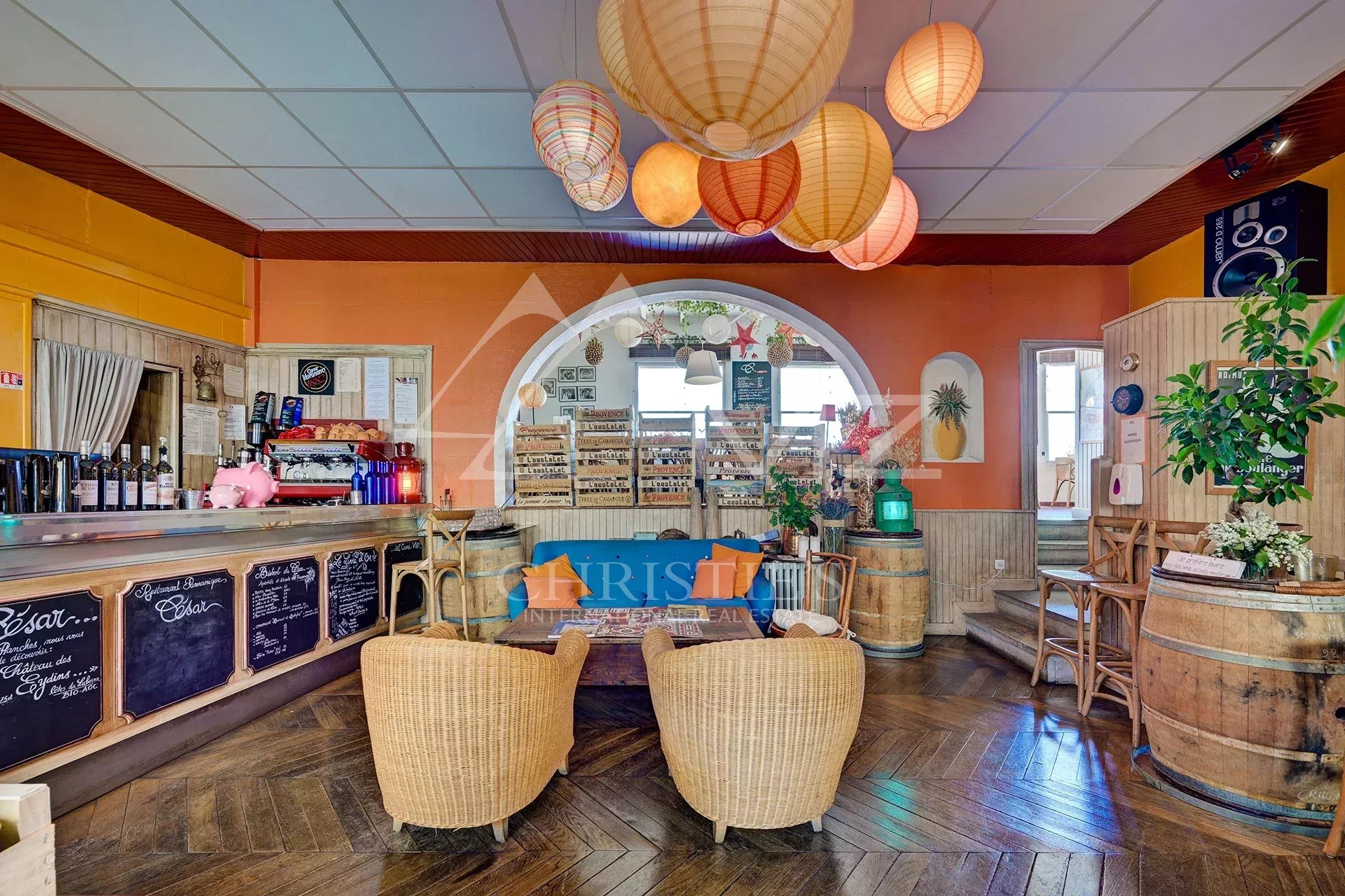Le Rez-de-chaussée se partage le hall de réception avec le côté bar , le hall de l’hôtel, ainsi que la salle du restaurant surélevée qui peut accueillir environ 40 couverts et bénéficie d’une superbe vue.