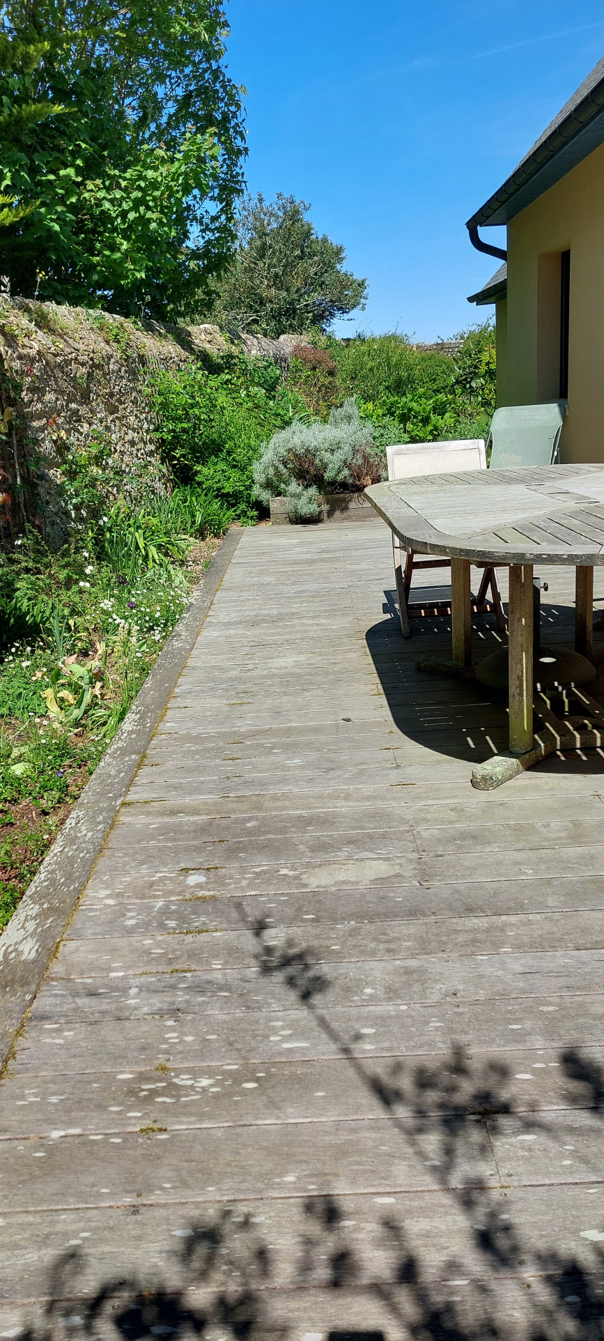 Cette maison reuni toutes les qualités pour combler un projet de résidence principale ou secondaire. Située à 800 m du bourg et ses charmants commerces, elle permet de relier en 5′ de marche la plage du pont ou les plages du Nicet et du Val.
