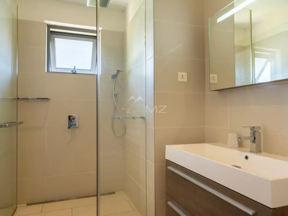 Ce superbe appartement d’une superficie de 200 m2 est situé au premier étage de cette résidence en bord de mer, et est accessible aux étrangers. Il se compose de 3 chambres en suite. Le spacieux salon et la salle à manger s’ouvrent sur l’extérieur par d’immenses baies vitrées surplombant une terrasse, ou vous pourrez vous relaxer tout en admirant la vue magnifique sur la mer et les montagnes.