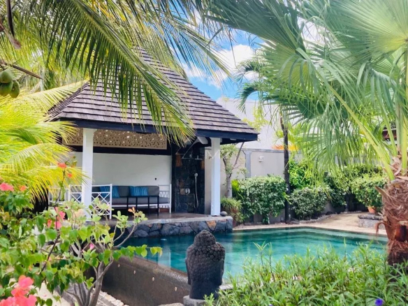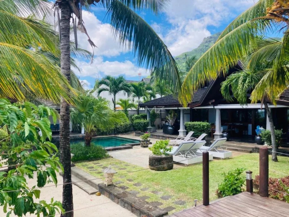 Cette somptueuse villa de 3 chambres avec salle de bains avec son appartement indépendant en bord de mer est la quintessence du luxe pour vos prochaines vacances à l’île Maurice.