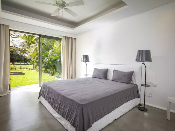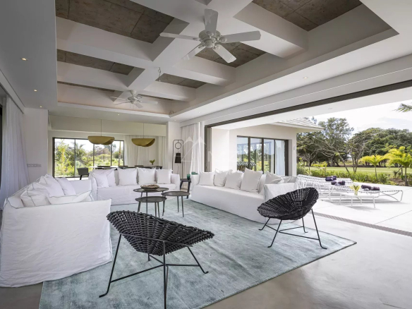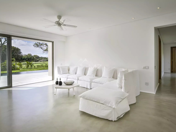Ce bien contemporain offre un grand espace salon et de réception avec cuisine américaine en bois kiaat extrêmement lumineux et ouvert sur la piscine de 70 m2 offrant une vue dégagée sur le trou No2 du parcours de golf. La décoration intérieure épurée aux tons neutres, aménagée de meubles de la marque Gervasoni, vous permettra de personnaliser les espaces de vie selon vos goûts. Une villa idéale pour profiter du cadre de vie tropical et des services 5*.