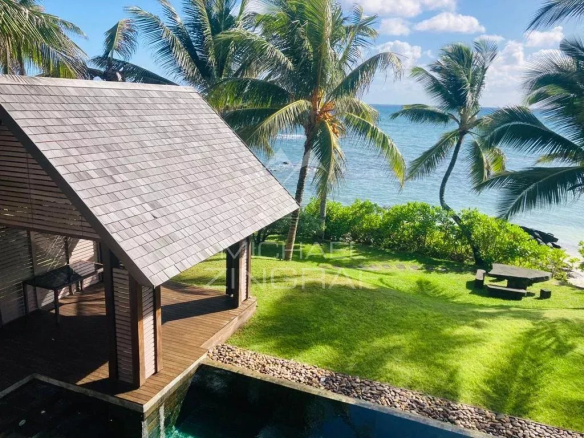 Située sur la mer, cette villa s’ouvre sur une piscine privée et une belle plage offrant une vue panoramique sur les îles du Nord.
