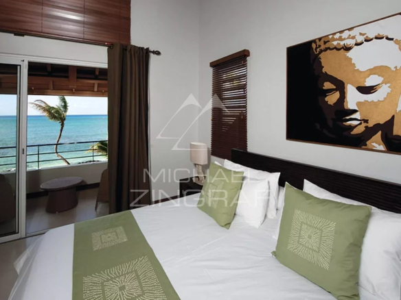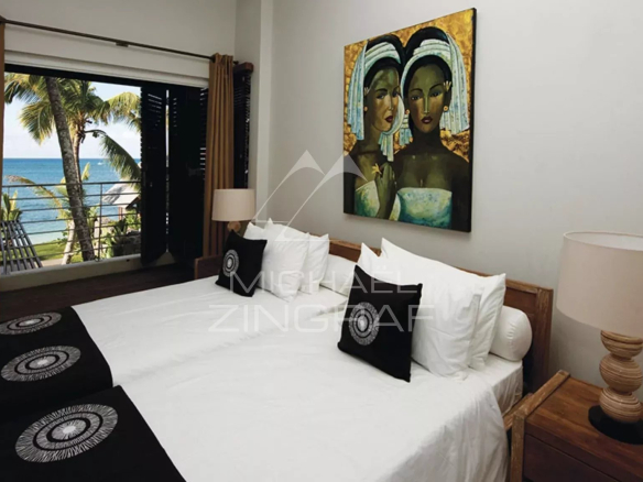 Les 4 chambres toutes en suite et décorées avec gout regardent toutes le Lagon.