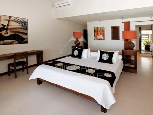 Cette luxueuse villa de 480m2 , entièrement meublée est située dans le quartier recherché de Pointe aux Canonniers et dispose de 4 chambres et 4 salles de bains. L’architecture est un pur raffinement de modernité et l’espace de vie et le confort sont dignes d’un resort cinq étoiles.