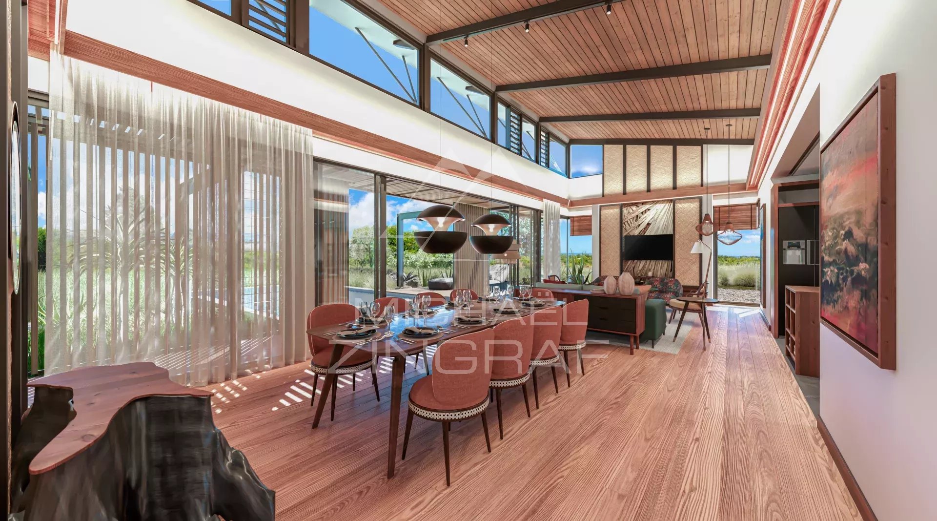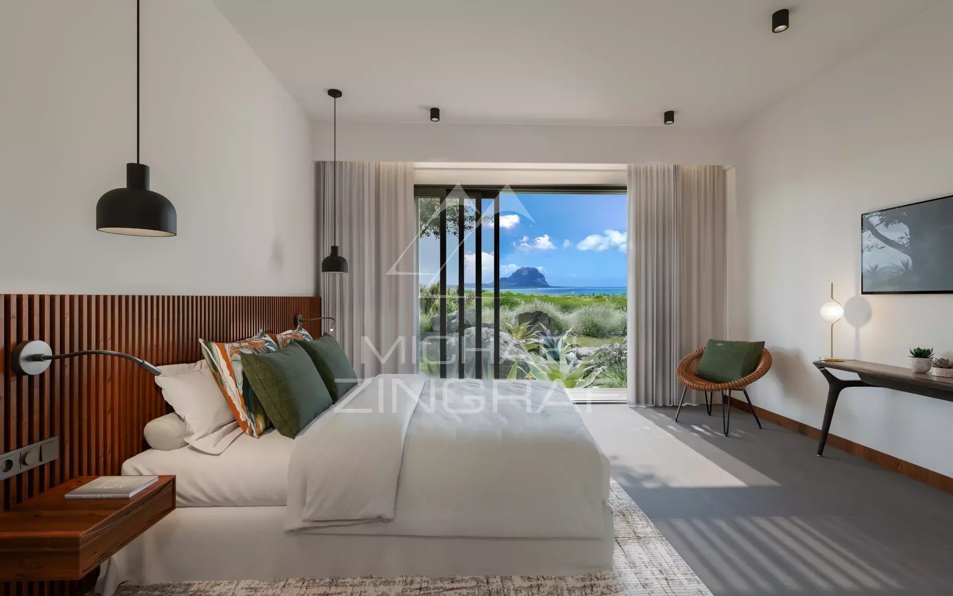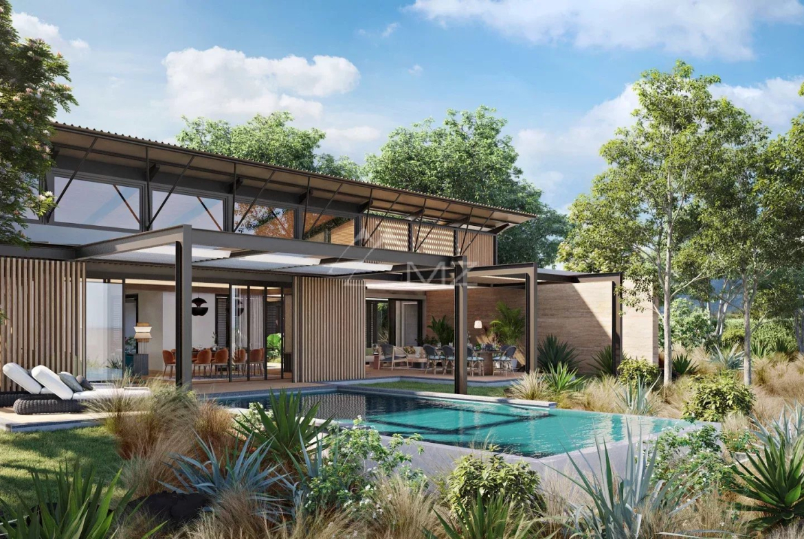 VILLA S: Ce concept se destine, en phase 1, aux 31 lots tournés vers le sud. Cette orientation offre les meilleures vues sur la mer et la péninsule du Morne, ainsi qu’une luminosité plus douce. Bercée par les alizés du sud-est, ce concept a été pensé pour séduire ceux qui apprécient pleinement la nature dans son caractère sauvage.