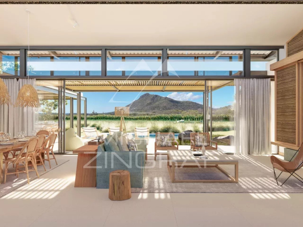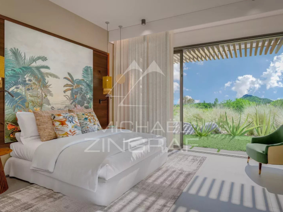 La première phase comprend 81 villas et parcelles résidentielles au coeur du domaine, et sera accompagnée de la construction du club house et des 9 premiers trous du golf. Les phases 2 et 3 suivront avec respectivement 78 et 61 unités. La 2e phase sera accompagnée de la construction des 9 derniers trous du parcours. Chaque phase devrait être achevée dans les trois ans suivant le début de la commercialisation. Trois modèles de villas présentant une surface réelle bâtie supérieure à 400 m² sont proposés sur des terrains d’une superficie moyenne de 2 000 m². Reposant sur le concept d’architecture durable, chaque villa a une orientation différente, avec le plus faible impact environnemental possible en tirant notamment parti de la topologie du terrain, ainsi que de la ventilation et de la lumière naturelles. Ce projet unique d’envergure exceptionnelle dans un environnement très recherché offre une vue imprenable sur Le Morne et l’Océan Indien.