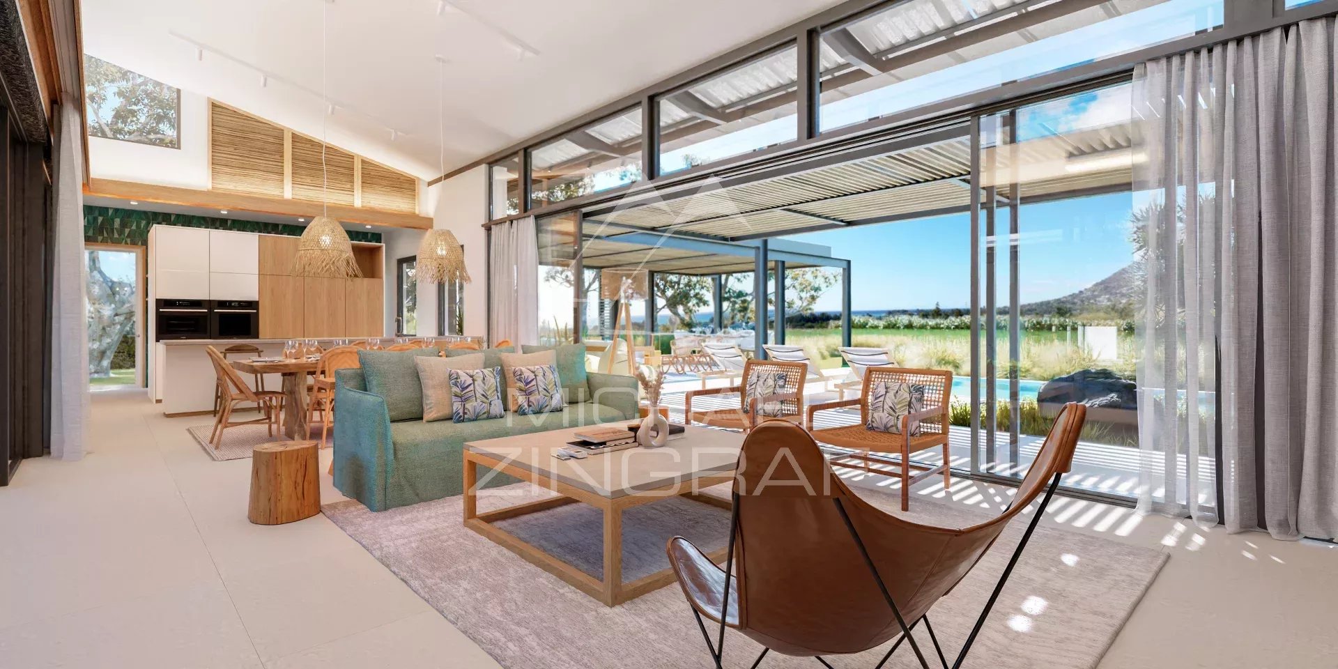 Élégante, spacieuse et intime, la villa N offre une superbe vue sur le golf et la montagne de la Tourelle de Tamarin, tout en offrant une orientation idéale, protégée des vents et bénéficiant pleinement de la lumière naturelle. Leur patio avec aménagement paysager tropical est un poumon vert autour duquel la vie de la maisonnée s’articule au quotidien. Avec leur trois chambres en suite (une 4ème chambre est proposée en option) et son grand espace de vie réunissant salon, salle à manger et cuisine ouverte, le tout tourné vers les espaces de vie extérieurs (kiosque et piscine), c’est la maison familiale tropicale par excellence.