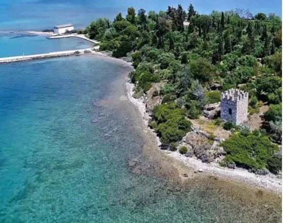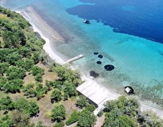 L’ile dispose d’une maison de 115 m2, d’une maison de gardien de 83 m2, de deux pontons pour bateau, une beach house, deux plages, d’une tour venitienne du XVII ieme siecle et d’une eglise.