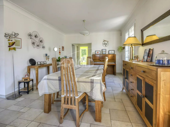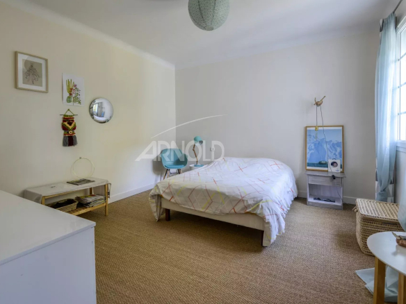 Dès l’entrée, un vaste hall s’ouvre sur un séjour baigné de lumière, sublimé par de larges ouvertures donnant sur l’extérieur. La cuisine indépendante, se veut conviviale et fonctionnelle, s’ouvrant sur la terrasse surplombant le jardin et la piscine, tout cela à l’abri des regards.
