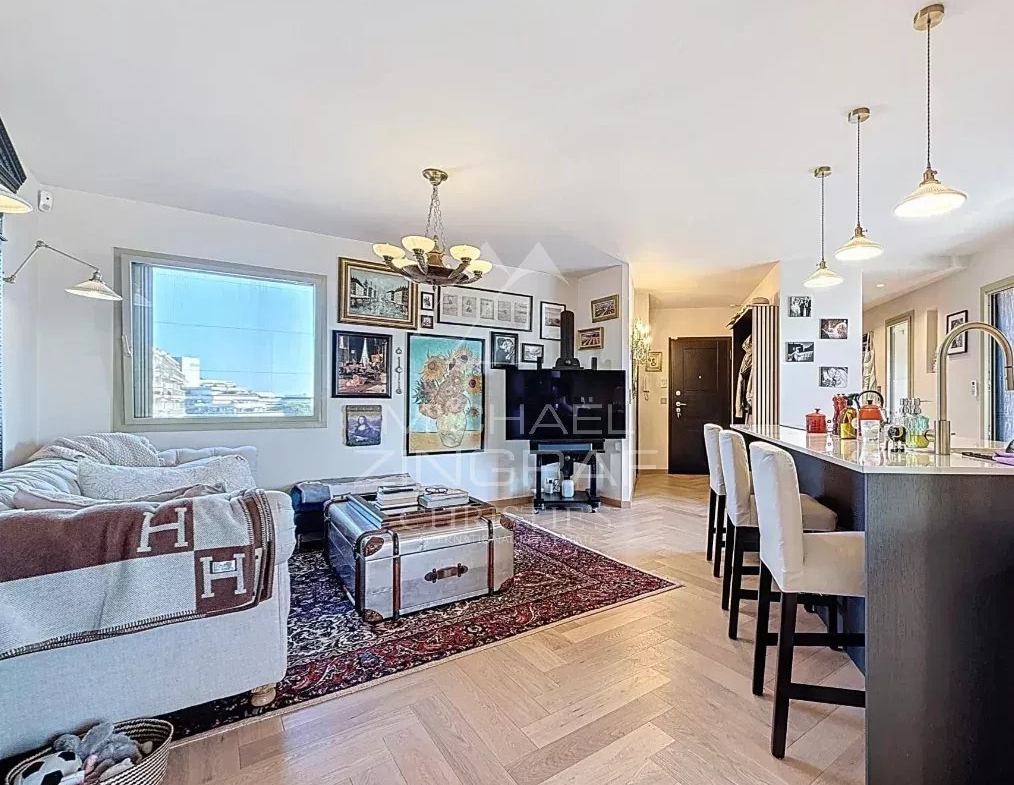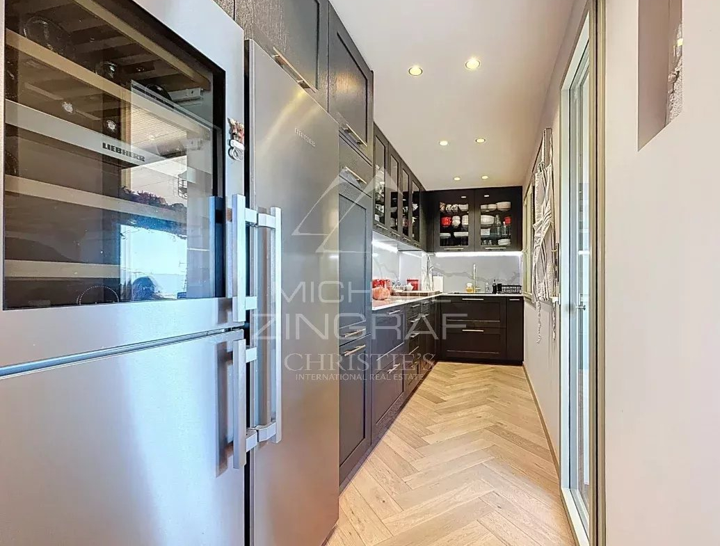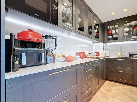 Entièrement rénové avec des matériaux haut de gamme, l’appartement séduit dès l’entrée par ses volumes généreux, ses finitions élégantes et sa luminosité omniprésente.