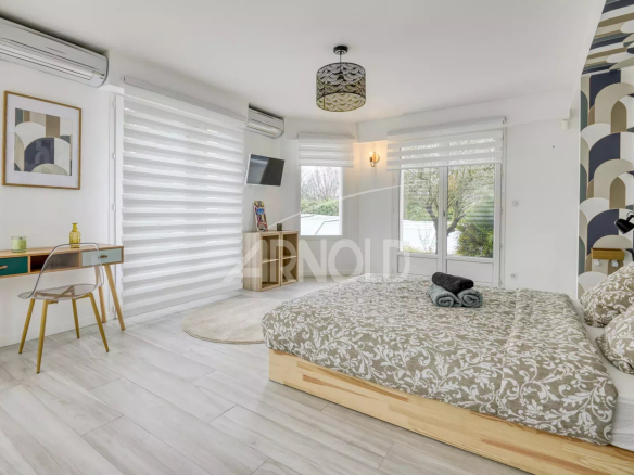 Elle s’avère être un choix idéal pour une famille en quête de confort et d’espace, offrant un jardin paysager sur une parcelle de 1 500m2.