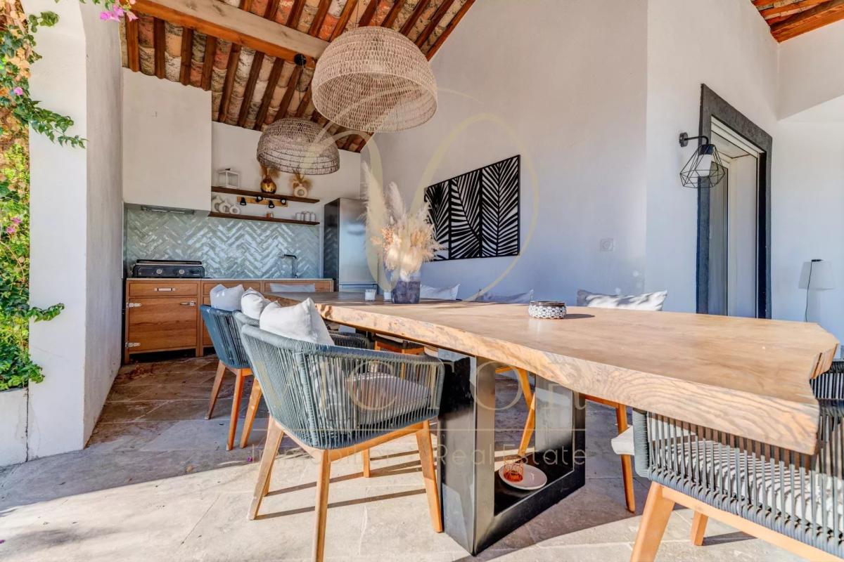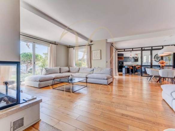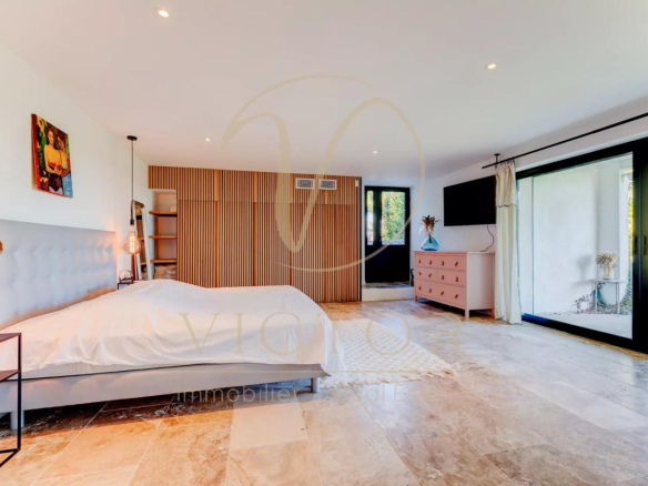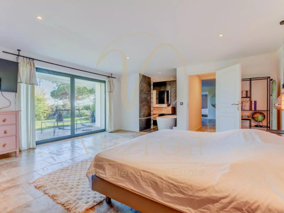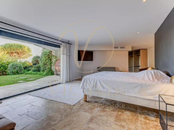 Villa composé: d’une entrée donnant sur un salon/salle à manger et cuisine équipée, le tout ouvrant sur une terrasse. 5 chambres dont 3 en suites et leur salles de bains, un bureau (dont un appartement semi-indépendant pour les invités).