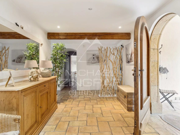 À l’étage, deux chambres supplémentaires, dont une suite parentale avec dressing, salle de bain, douche et terrasse avec vue sur le village, ainsi qu’une autre suite avec terrasse tropézienne, parfaite pour profiter des couchers de soleil.