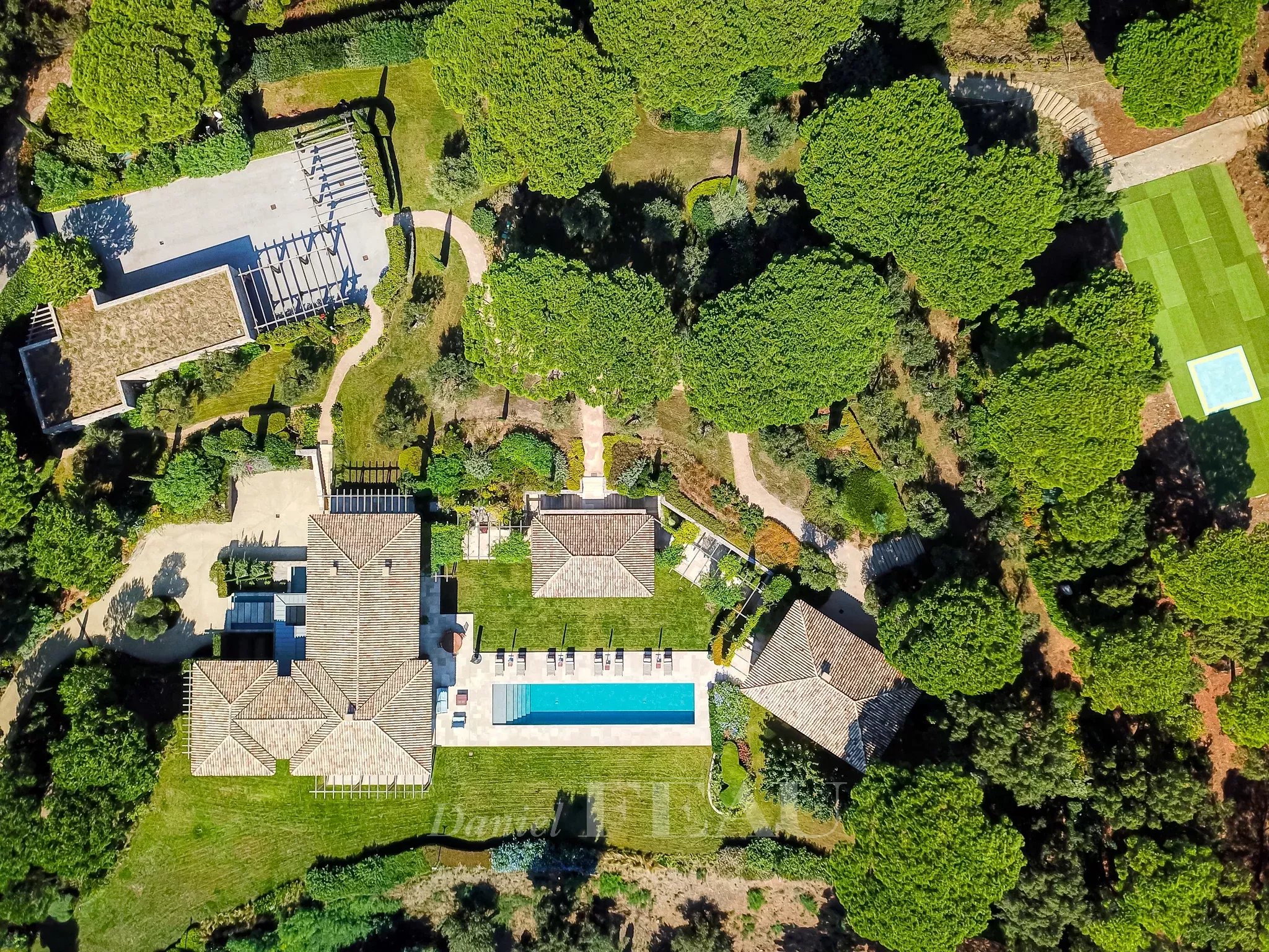 Plus de 800 m2 répartis en plusieurs villas permettent de profiter d’une vue mer lointaine, de 3 hectares de parc paysager et de prestations luxueuses.