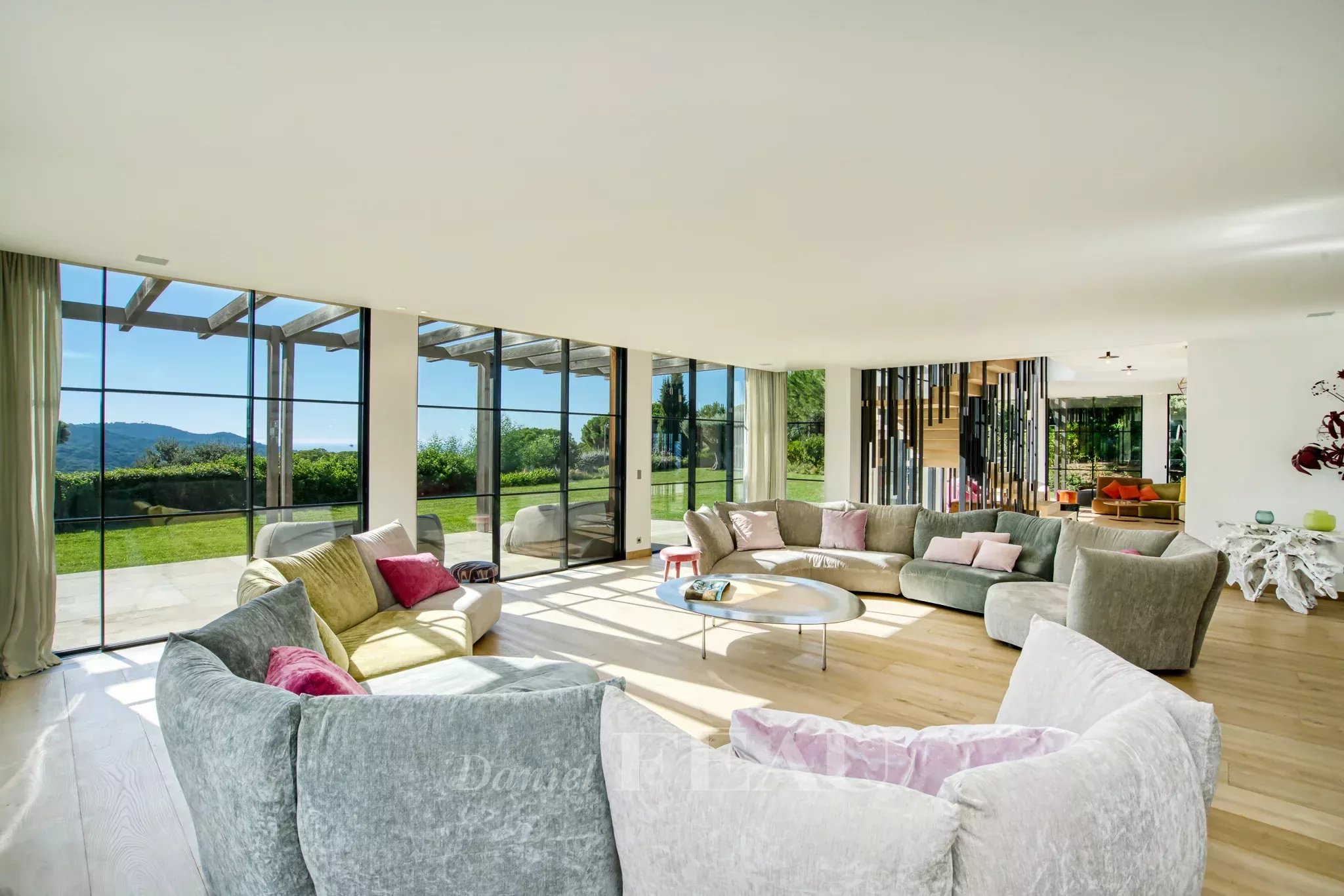 Les pièces de réception profitent de la vue par de larges ouvertures.