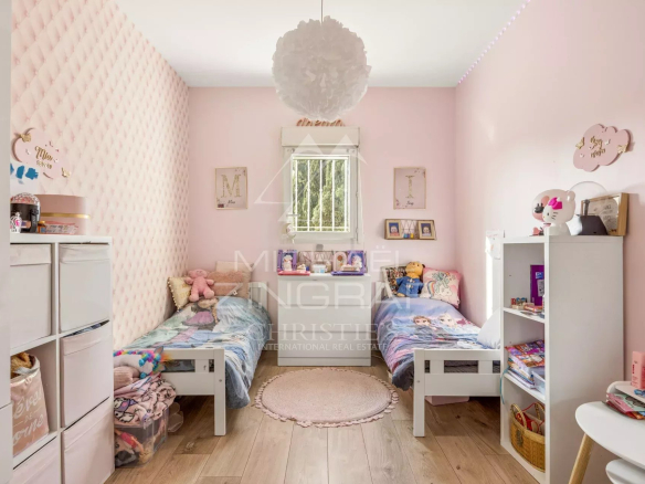 4 chambres au total, dont une suite parentale avec salle de douche et dressing privatifs. Les 3 autres chambres sont desservies par une salle de bain commune élégante et fonctionnelle.