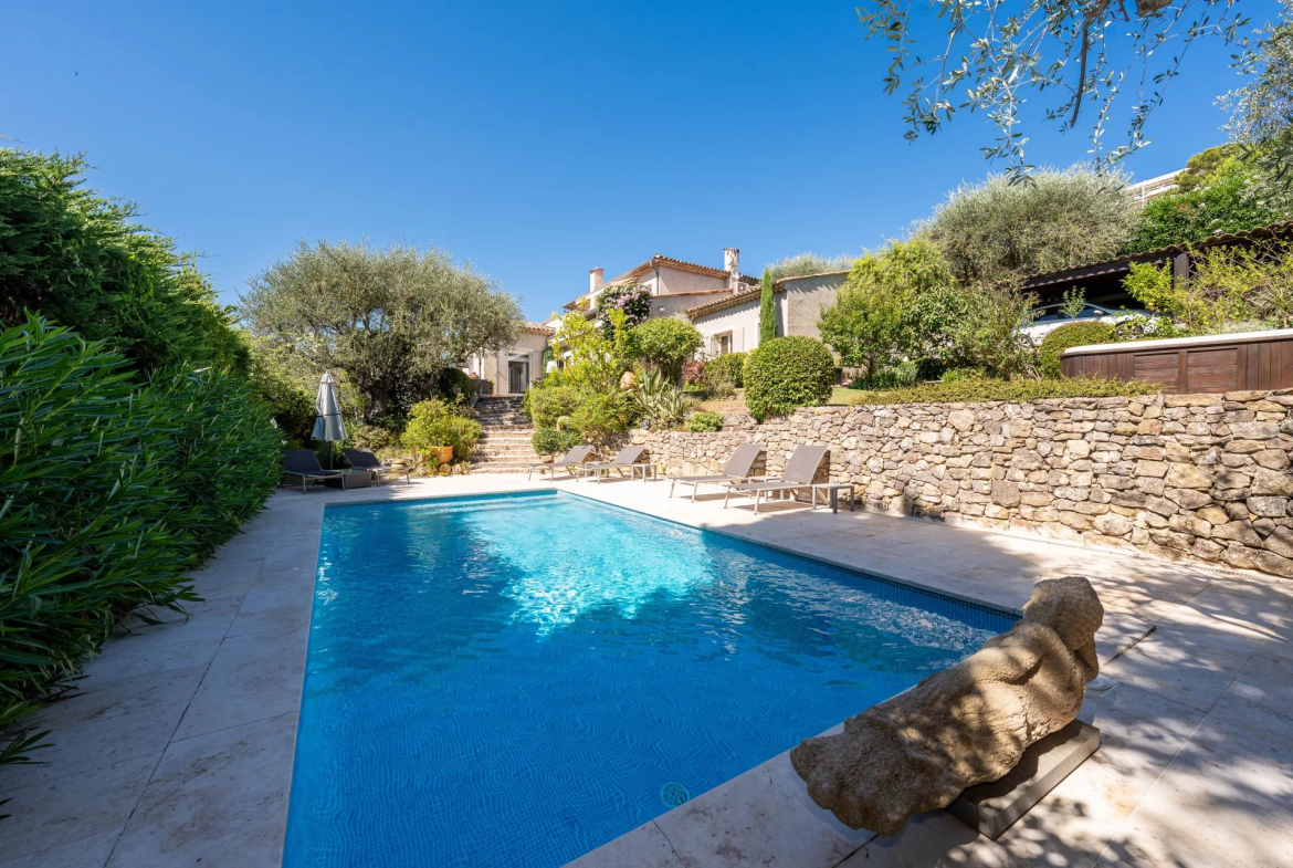 Belle villa de caractère 5 pièces d’env. 220 m² sur 3 niveaux, dans un écrin de verdure avec un terrain de 1300 m² avec un aperçu mer et une piscine chauffée.