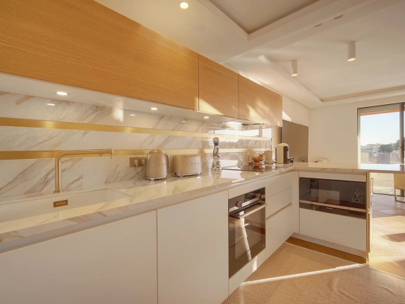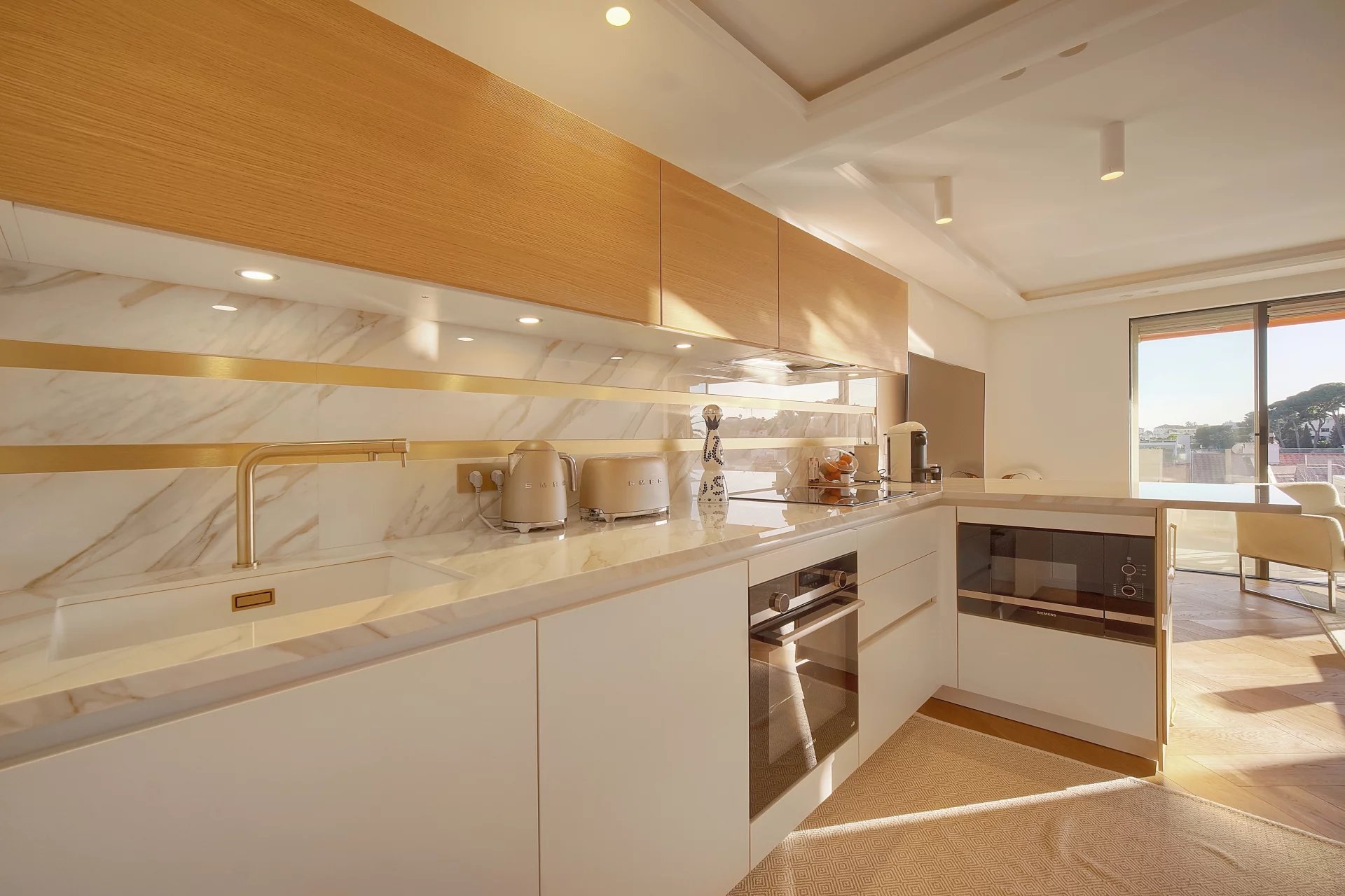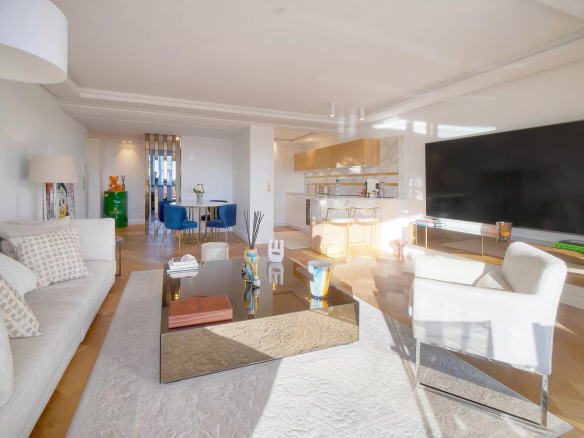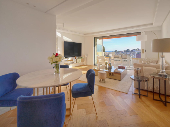 Ce magnifique appartement entièrement rénové avec des prestations haut de gamme se compose d’un hall d’entrée avec placard, un vaste séjour avec cuisine semi ouverte, une vue panoramique jusqu’à la mer, 2 chambres en suite avec dressing et salle de douche.