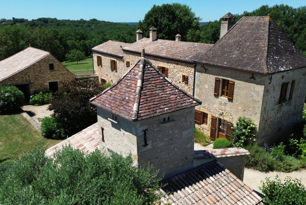 L’ensemble architectural, composé avec une élégance discrète, comprend une grange du XVIIe siècle, une tour, un pigeonnier, un four à pain, une ancienne porcherie, un espace vitré dédié à la détente avec jacuzzi et bassin d’aquagym chauffé, ainsi qu’une cave à vin.
