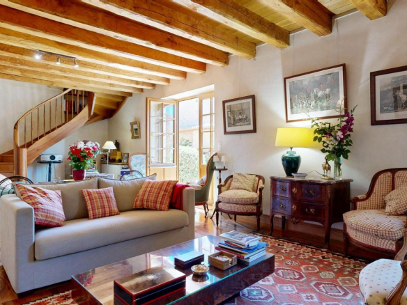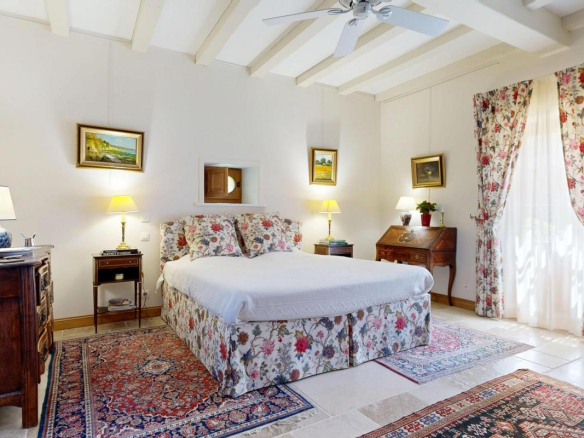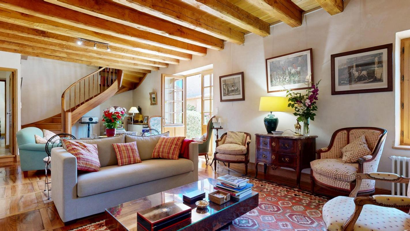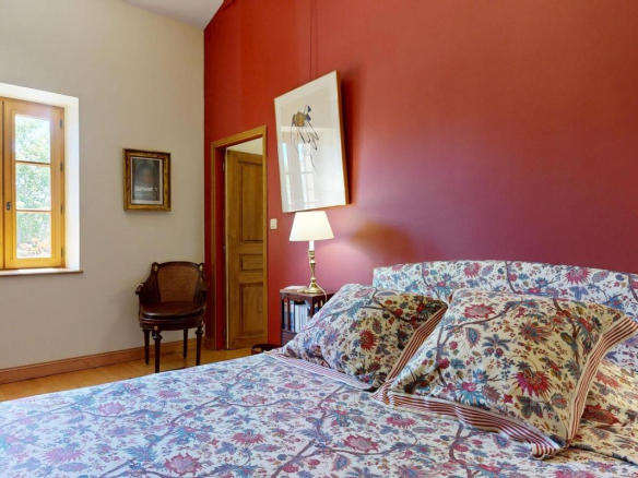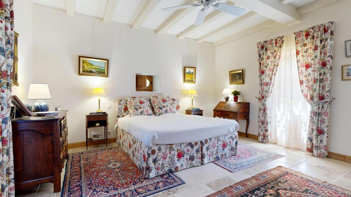 À l’intérieur, le raffinement est partout : parquets en noyer et chêne, cuisine Grange (Paris) entièrement équipée Miele et ZUG, salle à manger lumineuse, bibliothèque sur mesure, tomettes anciennes, cinq vastes chambres en suite dont une en rez-de-chaussée avec accès indépendant. Les prestations haut de gamme incluent ventilation dans chaque chambre, deux cheminées, réseaux enterrés, assainissement conforme, vidéosurveillance connectée, onduleur, parafoudre et un contrat Securitas actif.