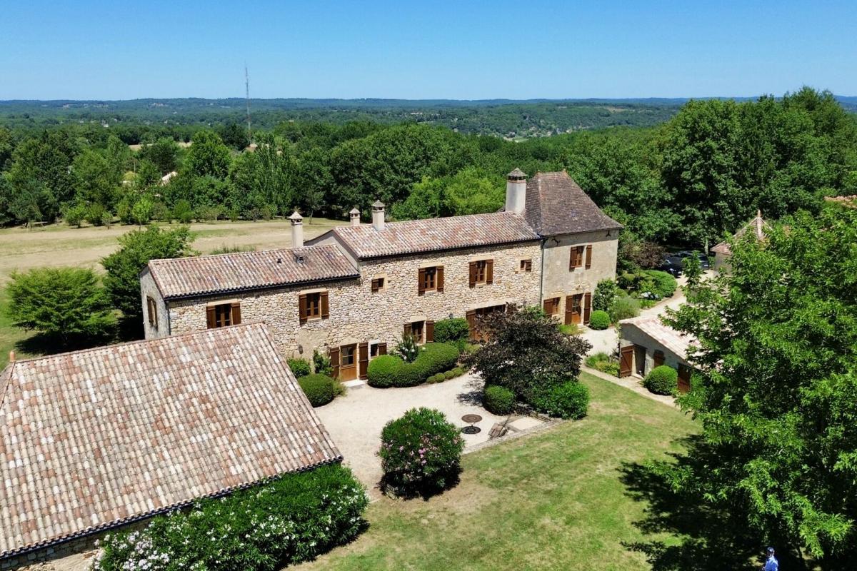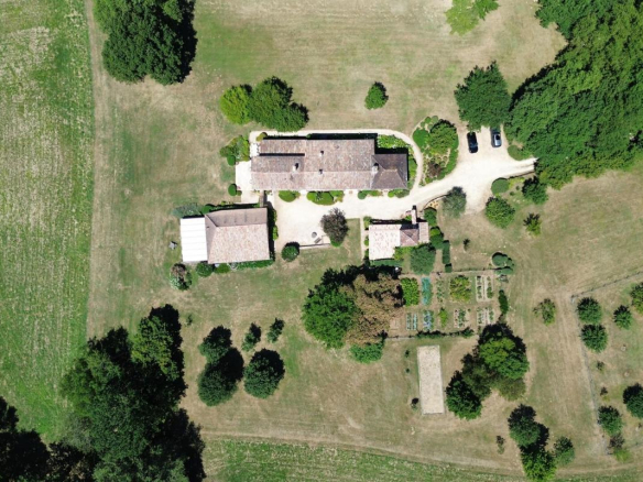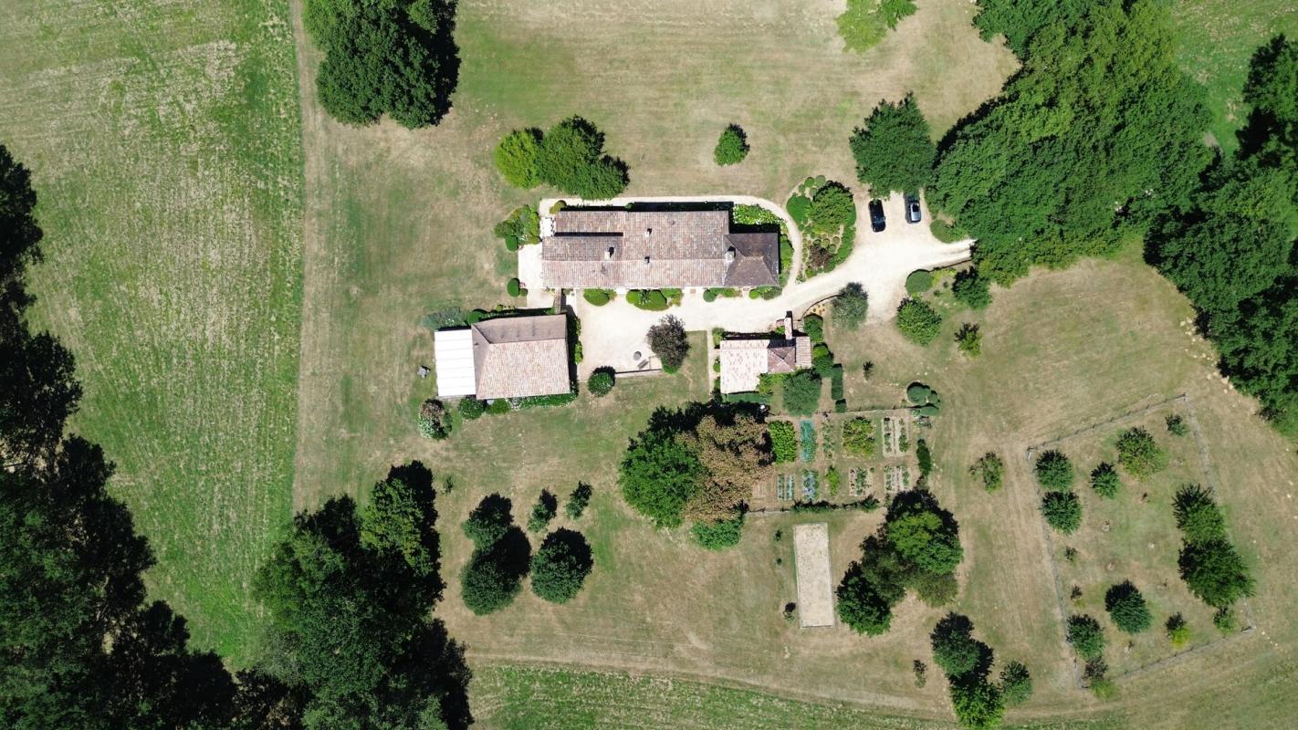 À quelques minutes du village, au bout d’une voie sans issue, se dévoile un lieu d’exception. Perchée en hauteur, cette propriété confidentielle de près de 20 hectares offre un panorama apaisant sur la campagne environnante, dans un calme absolu. Aucun vis-à-vis, aucune enclave : seulement la beauté d’un domaine parfaitement entretenu mêlant prairies, truffière, verger, potager, bois et noyers.