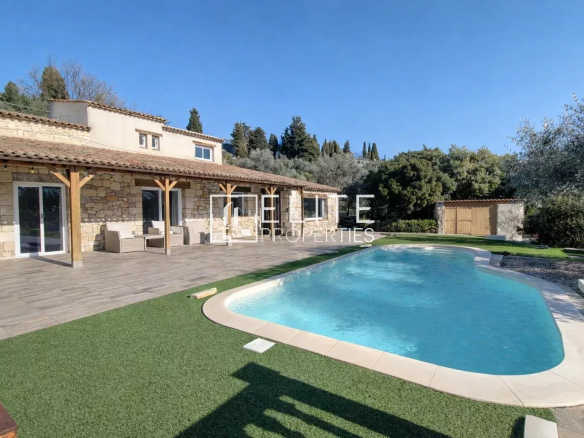 Sur une parcelle de 1700 m² environ, dans un environnement calme et recherché, découvrez cette belle maison en pierre alliant charme provençal et beaux volumes exposée plein SUD.