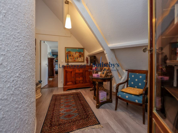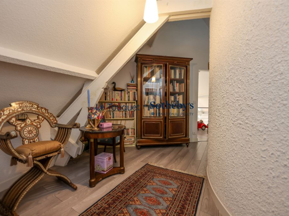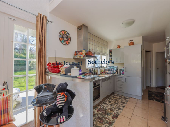 Erigée sur une parcelle de près de 1 800 m2, Sotheby’s le Touquet vous propose cette belle villa familiale que l’on découvre au bout de l’allée une fois le portail passé. Nous entrons dans un séjour lumineux grâce à sa double exposition et son toit cathédrale ; une petite cuisine séparée et ouverte prend place dans la continuité. Un long couloir distribue ensuite 2 bureaux, 2 chambres avec porte fenêtres et 1 salle de bains. L’étage accueille une grande mezzanine, 1 chambre et sa salle de douche, un large palier bibliothèque puis 1 vaste suite traversante bénéficiant d’une climatisation réversible et d’une salle de bains privative.