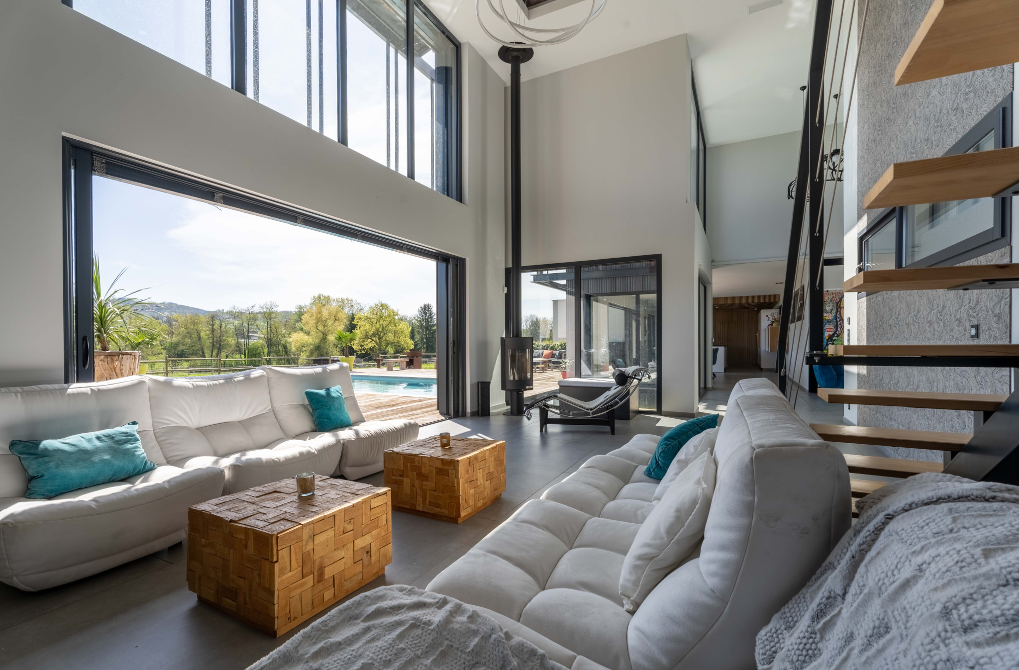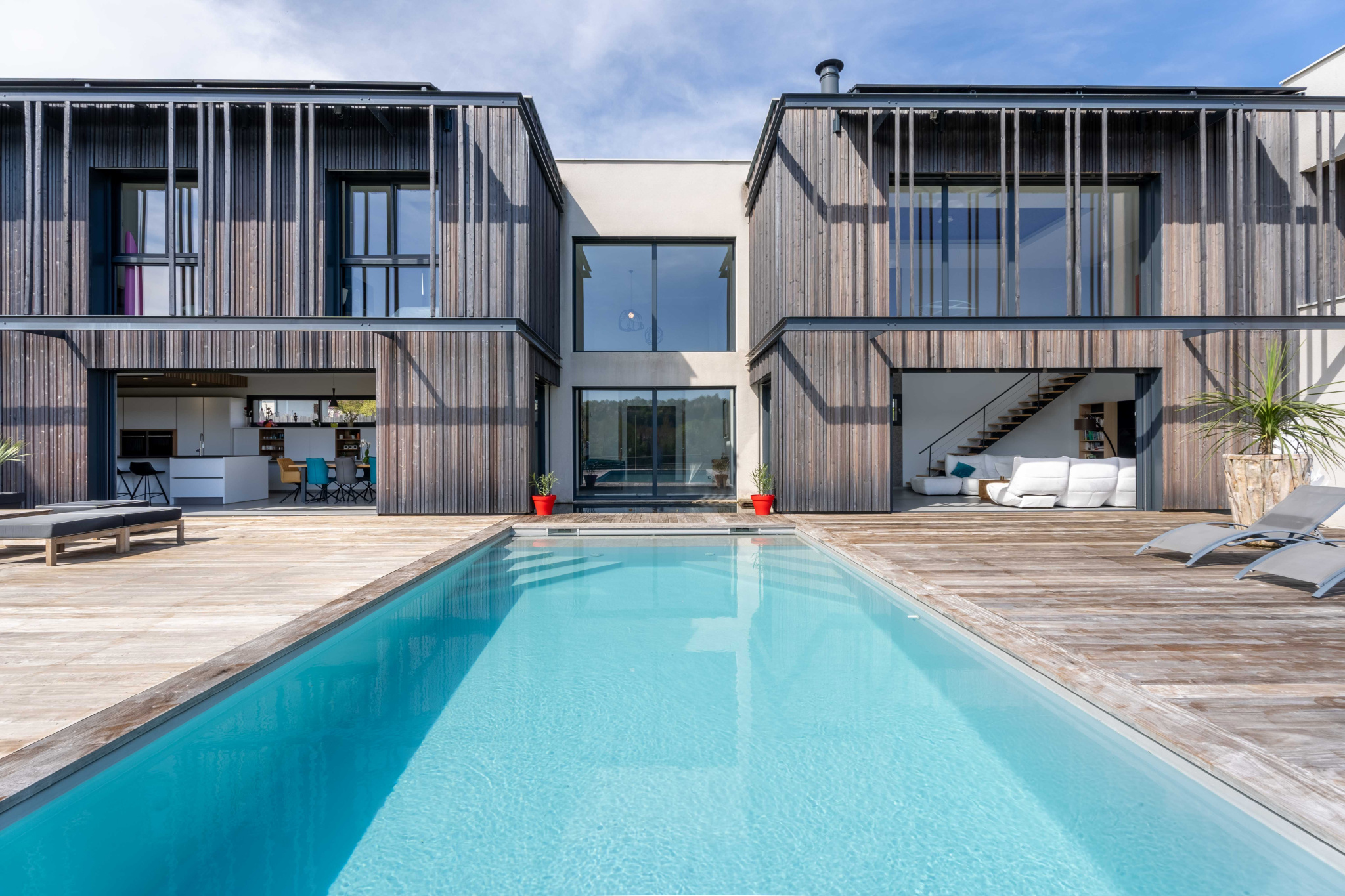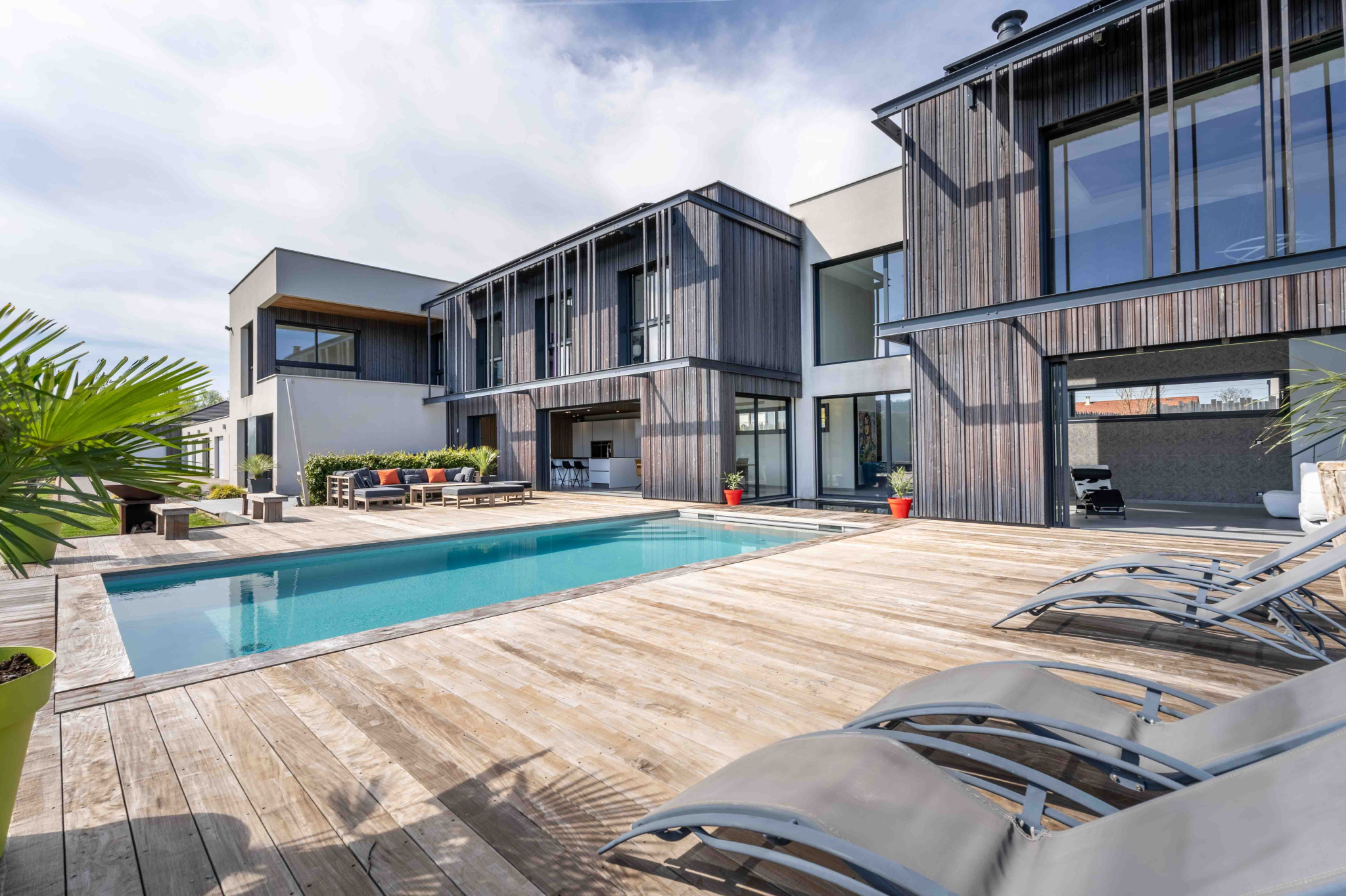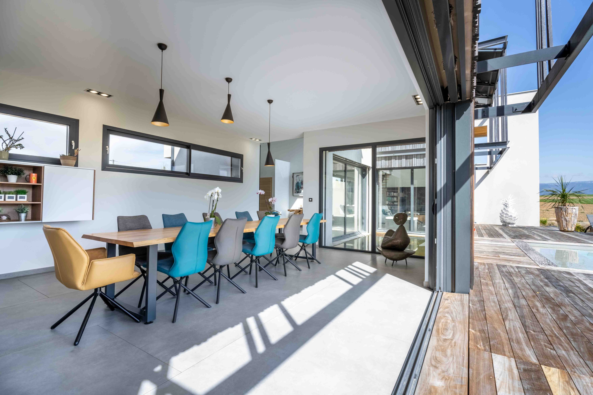 – Domotique : brises soleil orientables / éclairage / alarme