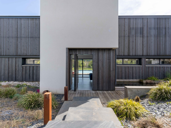 – L’entrée spacieuse, moderne vous accueille avec une belle hauteur sous plafond et de larges baies vitrées