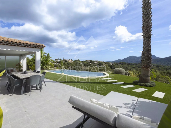 Érigée sur un terrain paysager de plus de 1 980 m², au sein d’un domaine privé prestigieux avec courts de tennis, cette superbe villa contemporaine de 237 m² séduira par ses volumes généreux, son confort moderne et sa vue imprenable sur les collines de l’Estérel.