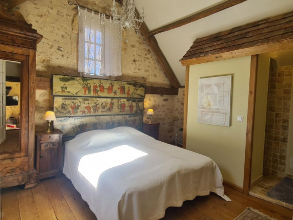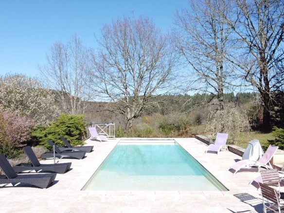 Sans voisin proche, à 5 minutes des Eyzies avec de très belles vues, cette ancienne propriété en pierres offre environ 240m² habitables au milieu d’un hectare de terrain, avec sa piscine dominant la vallée.
