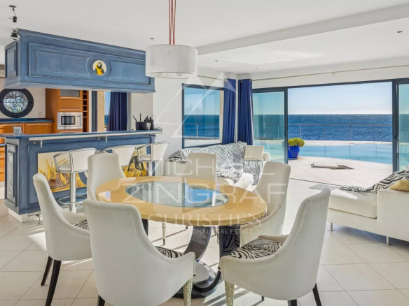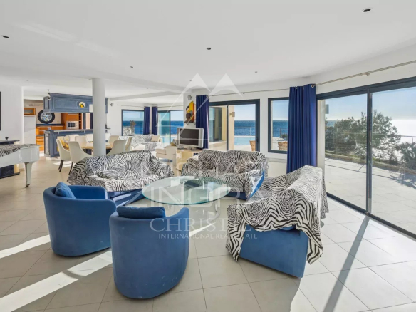 Offrant un accès direct et privé à la mer, la villa bénéficie d’une exposition plein Sud et d’une vue panoramique spectaculaire sur la Méditerranée, baignant chaque espace d’une lumière naturelle exceptionnelle.