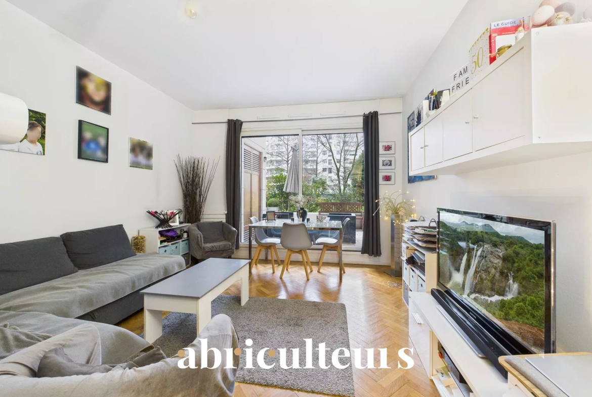 Le salon s’ouvre sur une magnifique terrasse de 21 m², véritable jardin privé calme et ensoleillé, donnant sur la verdure de la copropriété.