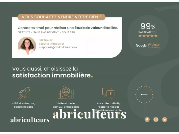Bienvenue chez Abriculteurs, l’agence familiale qui vous propose un service immobilier d’exception. Découvrez une présentation soignée de ce bien avec des photos professionnelles, un plan détaillé et une visite virtuelle immersive pour vous projeter dans un cadre unique.