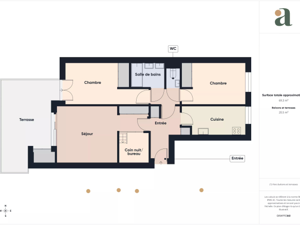 Plan en étoile : Aucune perte de place et une belle hauteur sous plafond de 2,82 m.