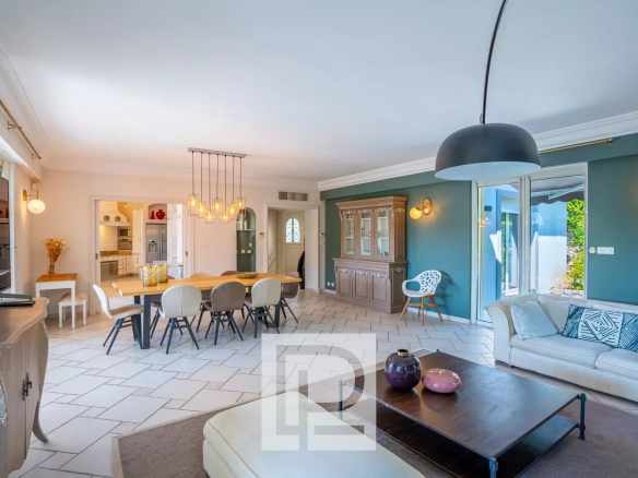 Édifiée sur un terrain paysager parfaitement entretenu, la propriété séduit par son calme absolu, son confort moderne et sa configuration idéale pour une famille. D’une surface d’environ 320 m², elle propose un vaste séjour lumineux avec coin salon et salle à manger, ouvert sur les terrasses et le jardin, une cuisine toute équipée ainsi que trois suites au rez-de-chaussée, dont une principale, et deux suites supplémentaires en rez-de-jardin, formant un appartement semi-indépendant avec cuisine équipé et séjour idéal pour le personnel, jeunes adultes, grands-parents ou invités.
