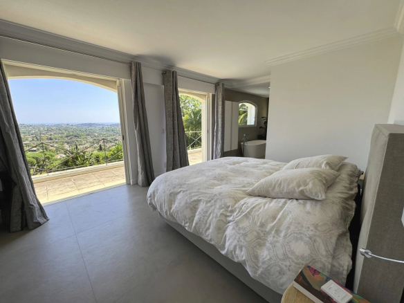 La propriété dispose de trois chambres, dont une vaste suite parentale qui donne accès à une terrasse privée à l’étage, idéale pour des moments de détente avec vue.