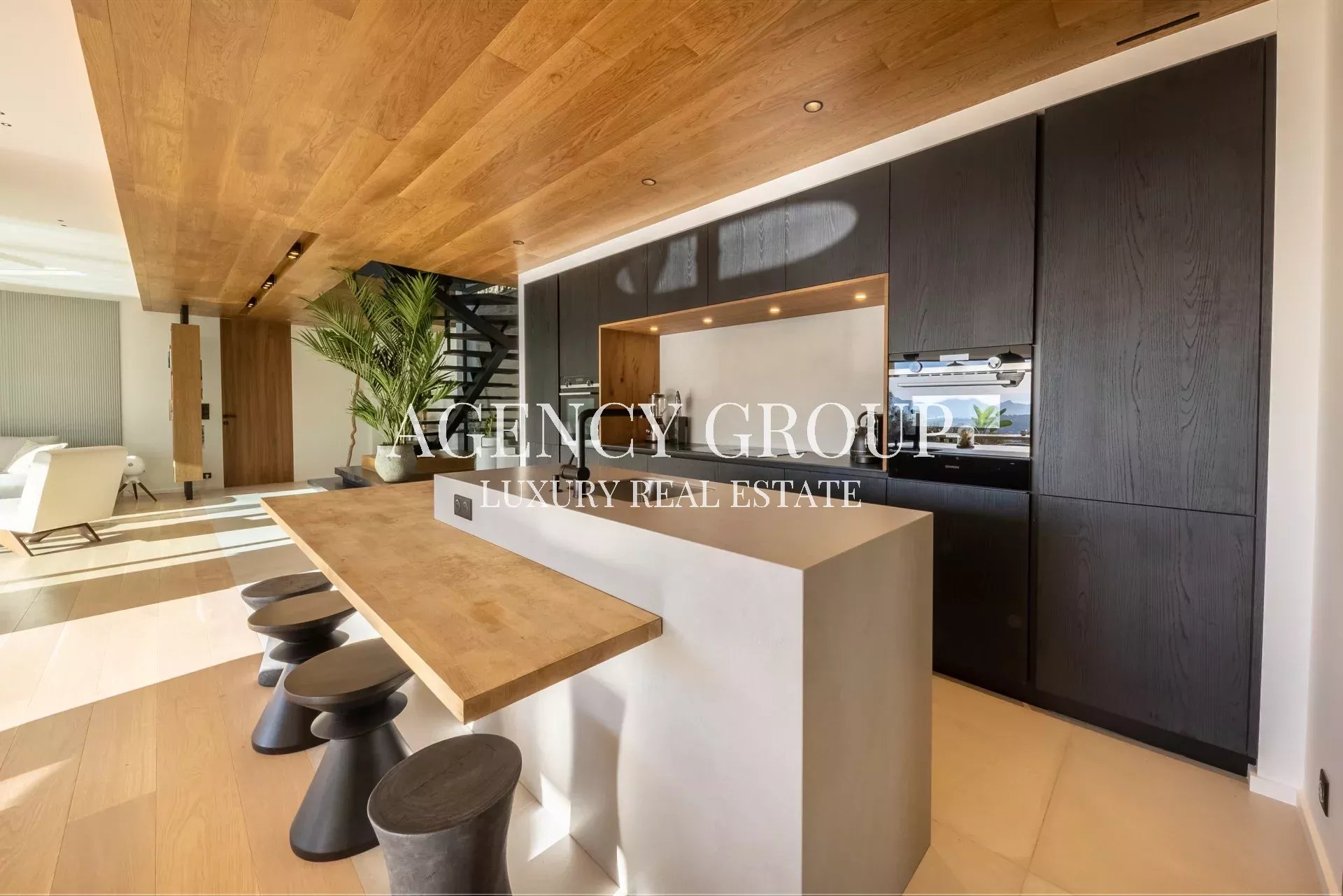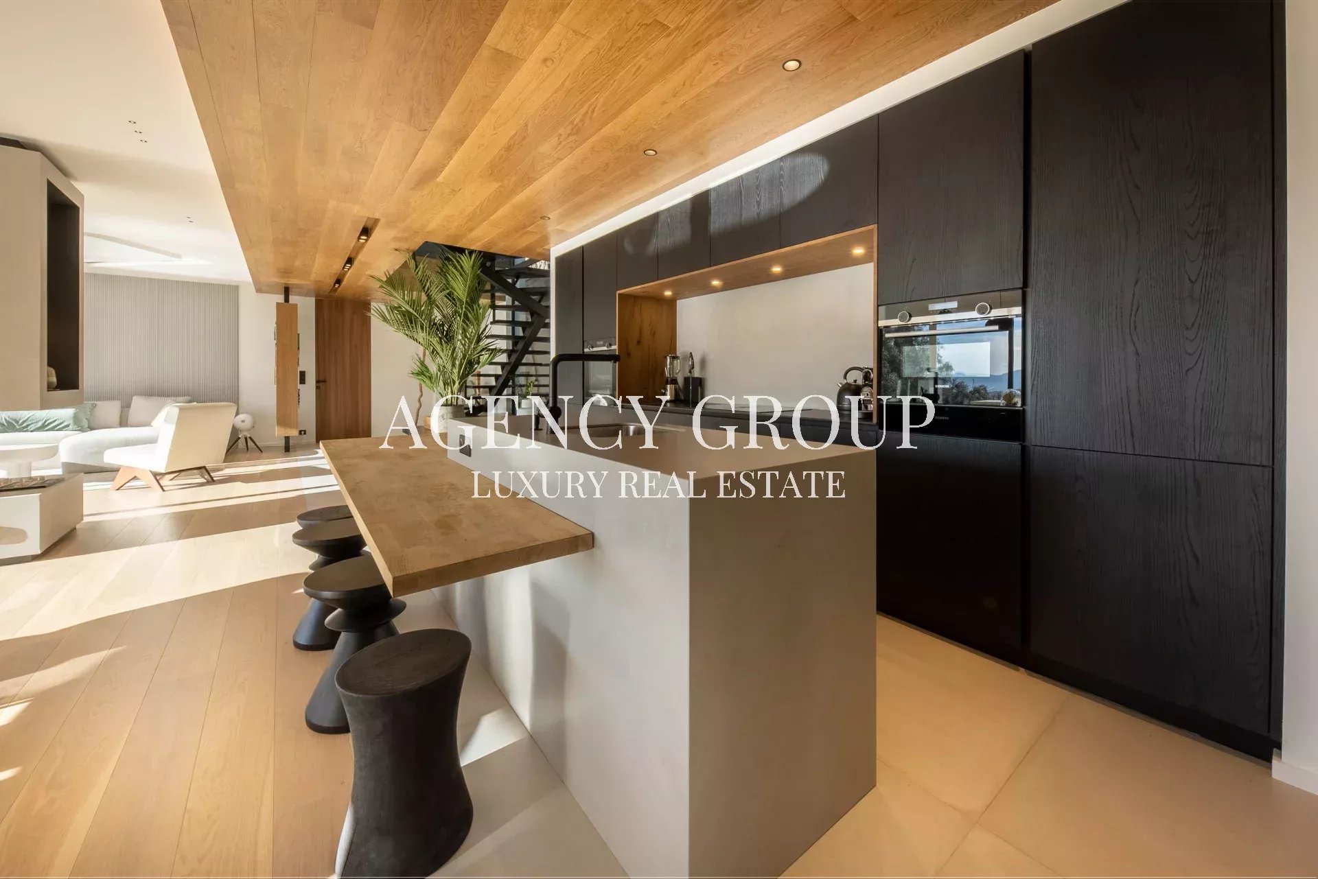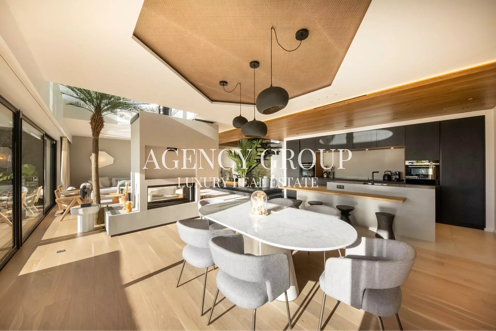 Au rez-de-chaussée, cette villa offre une cuisine entièrement équipée avec cave à vin intégrée, un vaste espace salon et salle à manger s’ouvrant sur une terrasse verdoyante et une piscine, ainsi qu’une élégante chambre de maître de 45m² avec salle de douche privative.