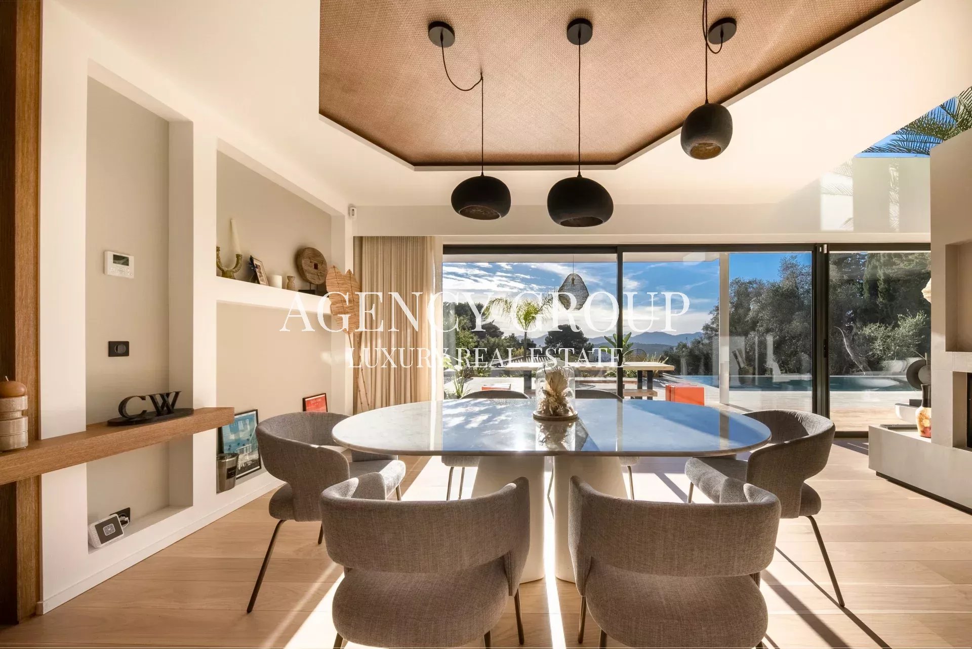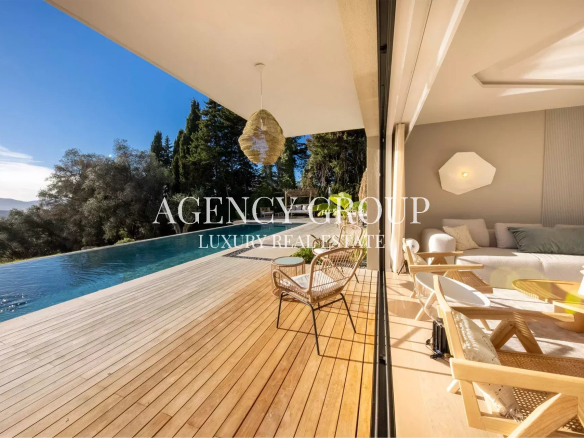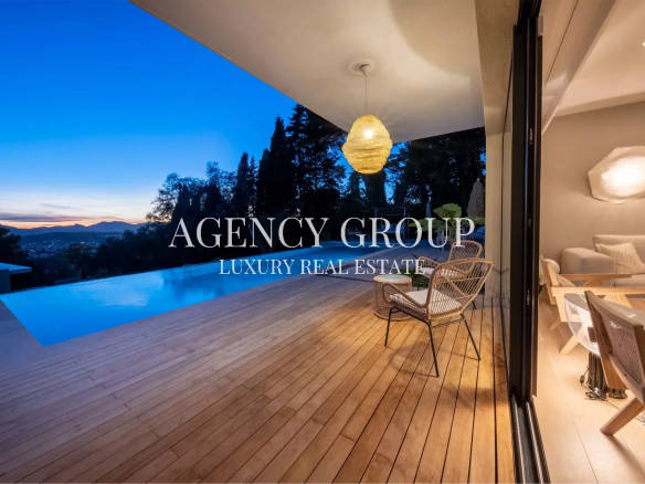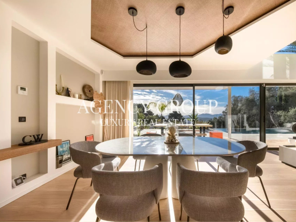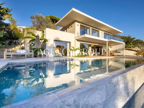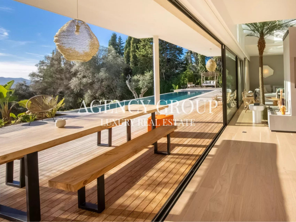 Somptueuse villa de 220m² au design épuré et raffiné nichée dans un quartier paisible sur les hauteurs de Cannes offrant un cadre luxueux et minimaliste idéal pour des séjours en famille ou entre amis.